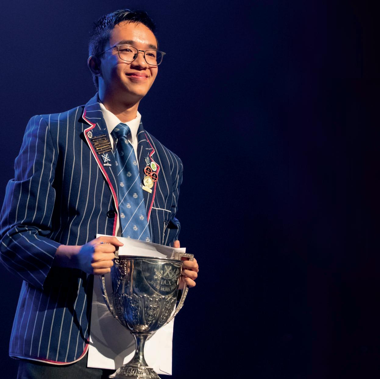 Russell Boeyは、近年におけるセントアンドリュー スカレッジの最も優秀な生徒です。2018 Duxで は、 6つの奨学金の対象科目で優秀な成績を収め、そ の5つの科目で非常に優れた結果を残した生徒とし て表彰されました。このような成績を収めたRussell は、ニュージーランドの2018年度の最優秀 生徒10名に選出されましたRussellは、ブラチスラ バ(スロバキア)とプラハ(チェコ)で開催された第 50回Chemistry Olympiadに4名のニュージーランド 代表の1人として参加しました。科学の分野の成績に 加えて、才能あるライターでもあるRussellは、全国 Sunday Star Times Short Story Competitionのセカ ンダリースクール部門での受賞をはじめとする多くの 文芸大会で優れた成績を残しています。シンガポー ルで生まれたRussellは、幼少時にニュージーランド に移住しました。Russellは、優れた教師の指導の下、 優れた業績を達成しました。2019年にオークランド大 学の物理学科に入学したRussellは天体物理学を学 んでいます。