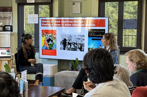Activists and scholars Lara Kiswani (Arab Resource Organizing Center) and Samia Shoman (Liberated Ethnic Studies Model Curriculum Consortium) led a powerful teach-in on the crucial relationship between Arab American studies, Asian American studies, and ethnic studies. They emphasized the importance of support and advocacy for the inclusion and teaching of Palestine in Asian American studies and beyond, and how the struggle to teach liberated ethnic studies concerns us all.