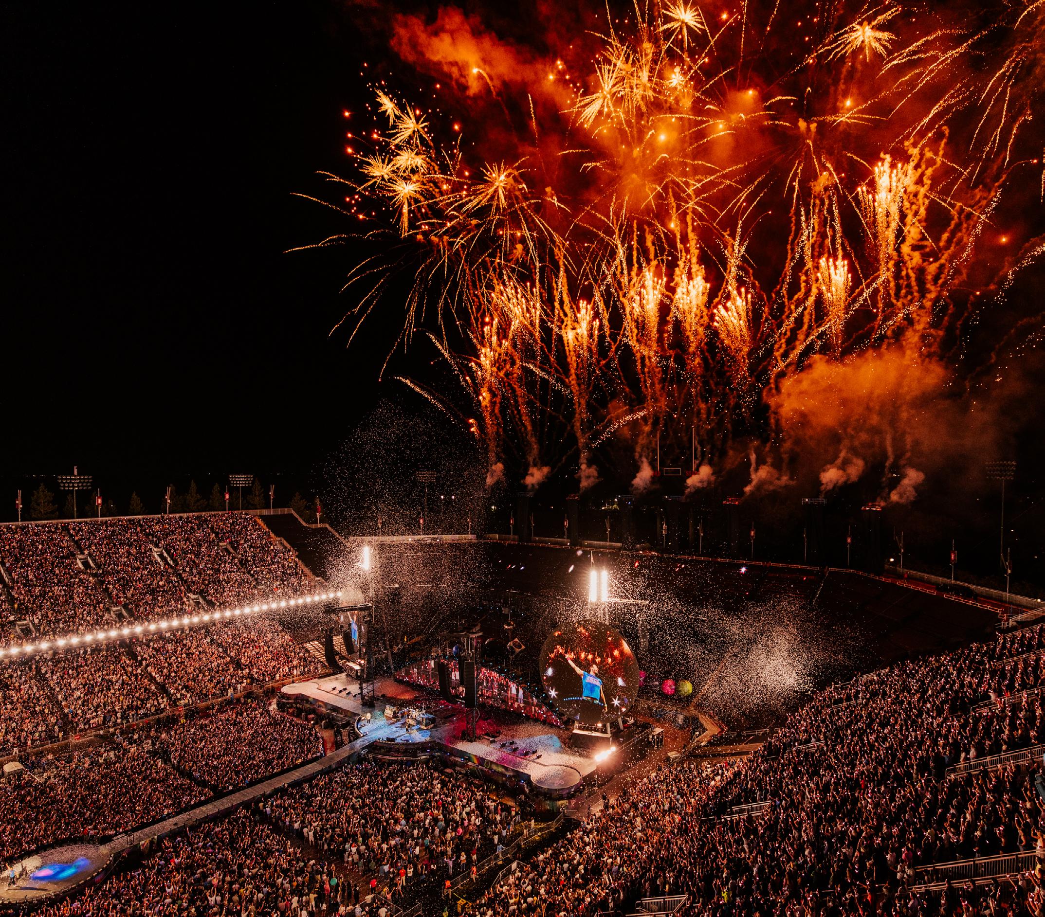 Coldplay performs at Stanford University, co-presented by Stanford Live and Stanford Athletics.