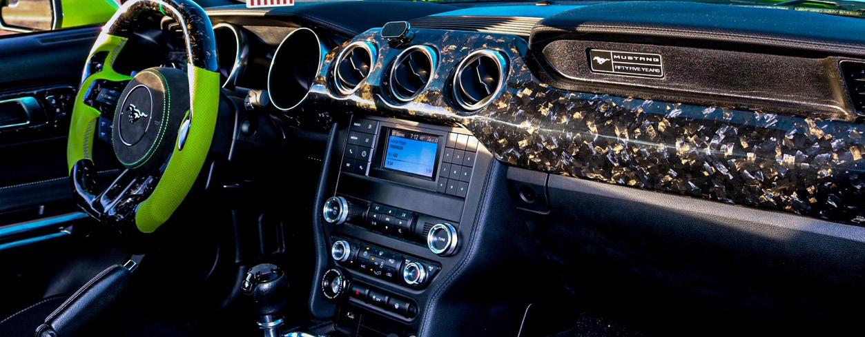 This 2015 Mustang GT Premium car has the new version Cobra Jet intake ported by 1320 Junkie, VMP twin 69mm throttle body, a P51 cold air intake, and Corsa Extreme exhaust tuned for E85 by Lund Racing. This car is a fun weekend cruiser and has that little extra sauce for going out and having a little fun. With the added GT500 style front bumper and quad tip exhaust along with 20” Forgestar F14 wheels tucking 325s in the back, this car definitely catches your eye when you hear the familiar Mustang roar coming. Last but not least with the upgraded 2018 digital dash, performance pack gauges, and some carbon fiber styling it definitely steps up finishing the interior of this Mustang.