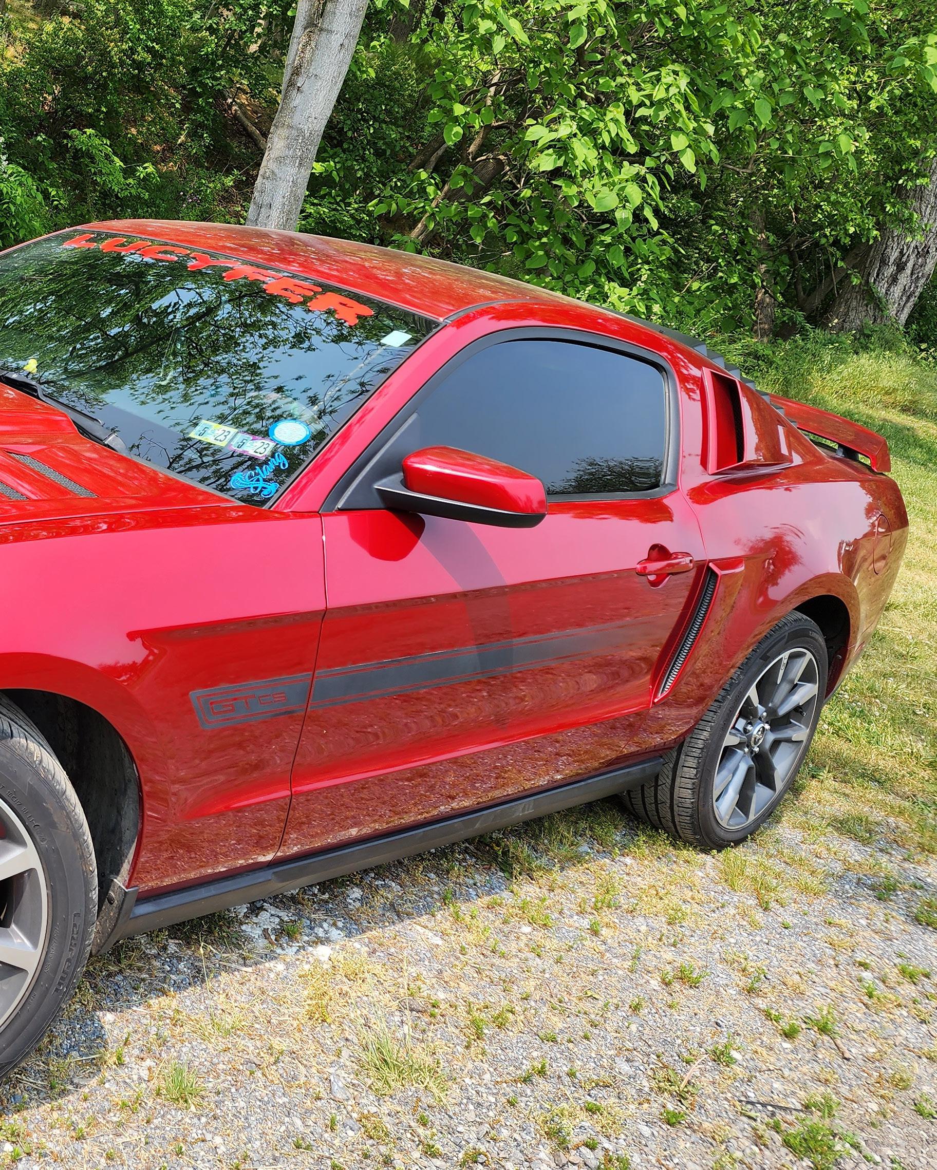 Lucyfer is a 2011 Candy Red, Mustang GT California Special. She is my second Mustang. I’ve had her since October of 2019. She has a cold air intake by Airaid, Stainless Works exhaust, rear window louvers, Cervini ram air hood, Ford Boss 302 chin splitter, sequential projector headlights by Raxiom, tail lights by Raxiom, and I will be adding much more to her as time goes on.