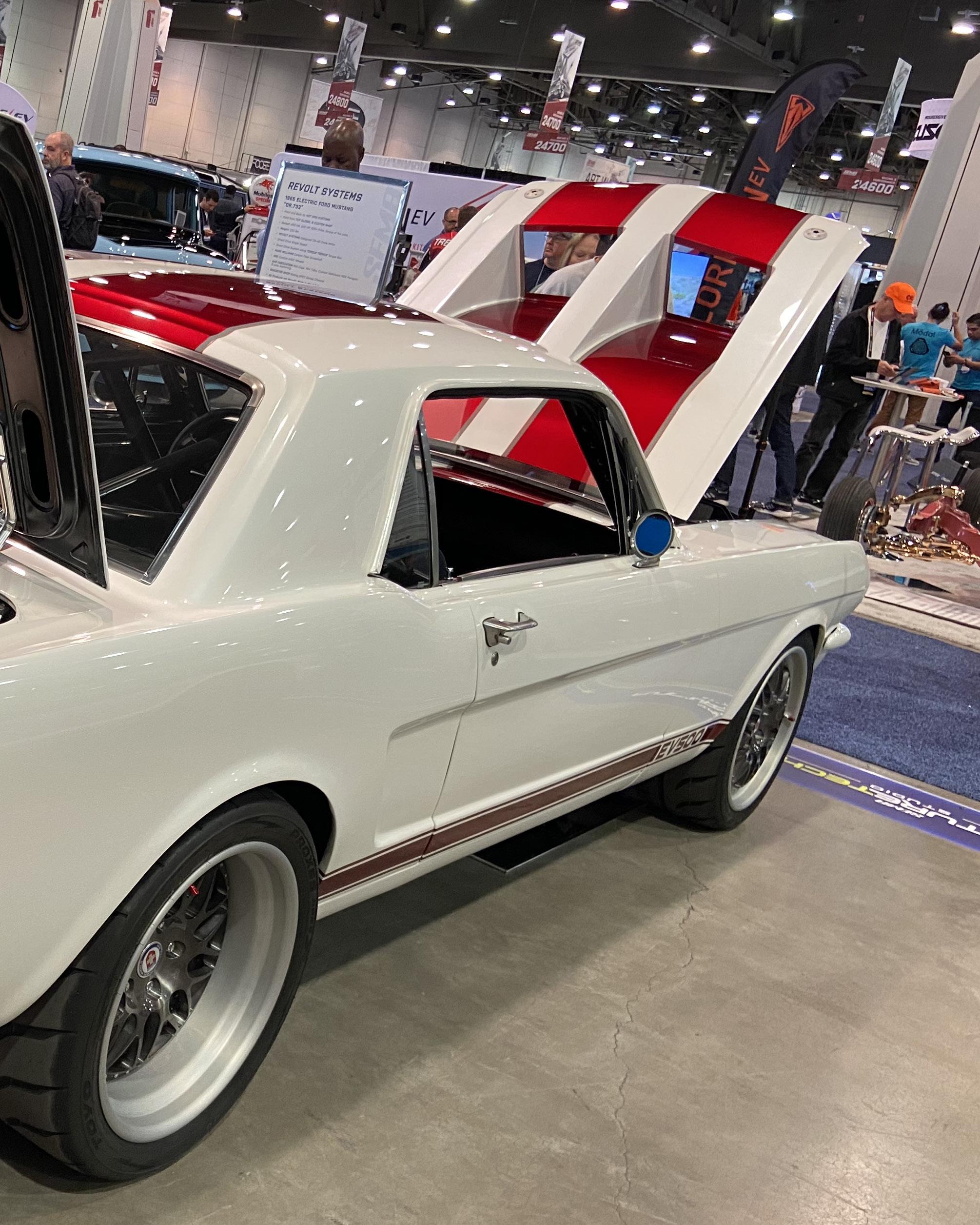 In a show filled with high-performance gasoline engines and unconventional builds, the Revolt Systems All-Electric 1965 Ford Mustang stood as a symbol of the automotive industry’s evolution towards electrification, proving that the future of custom cars can be both powerful and environmentally conscious.