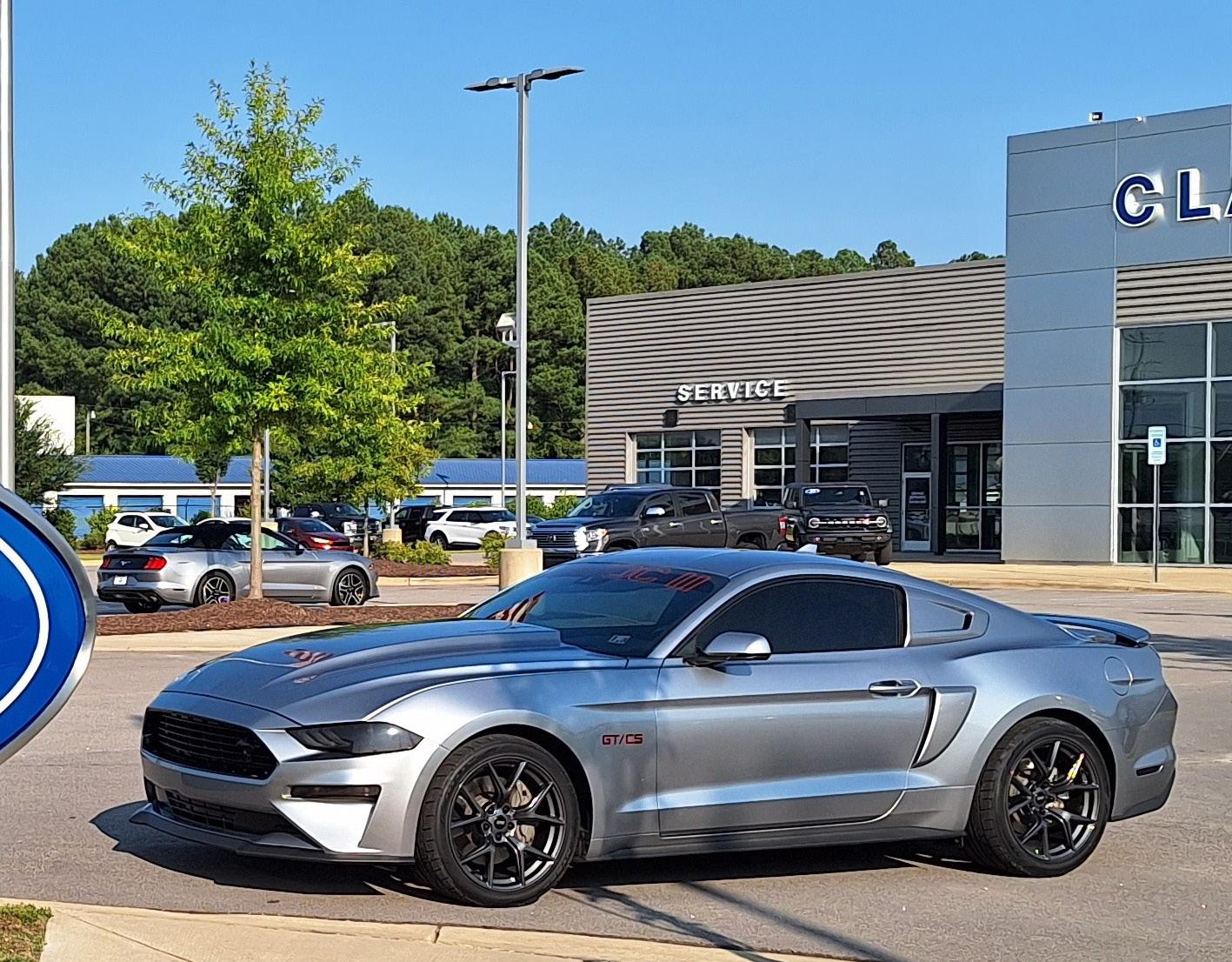 This is Havoc II, a 2020 Mustang GT California Special. It is fully speced out in Iconic Silver with Red accents, heated and air conditioned seats, heated steering wheel, digital dash cluster, and active exhaust with resonator delete with H pipe. Being a California Special, I don’t want to do anything to it that can’t be put back to original so the engine is stock. It has a 10R80 10 speed automatic transmission, SVE SP2 Gloss Graphite wheels 19x10 wrapped in 285/35/19 Nitto 555 G2 tires in front and 19x11 wrapped in 305/35/19 Nitto 555 G2 tires in rear, Cervini Cobra R hood, and I removed the black GT/CS mid door stripe to be replaced with a red GT/CS on the front fender. It also has rear side window MP Concepts scoops, and tinted lights all around the car.