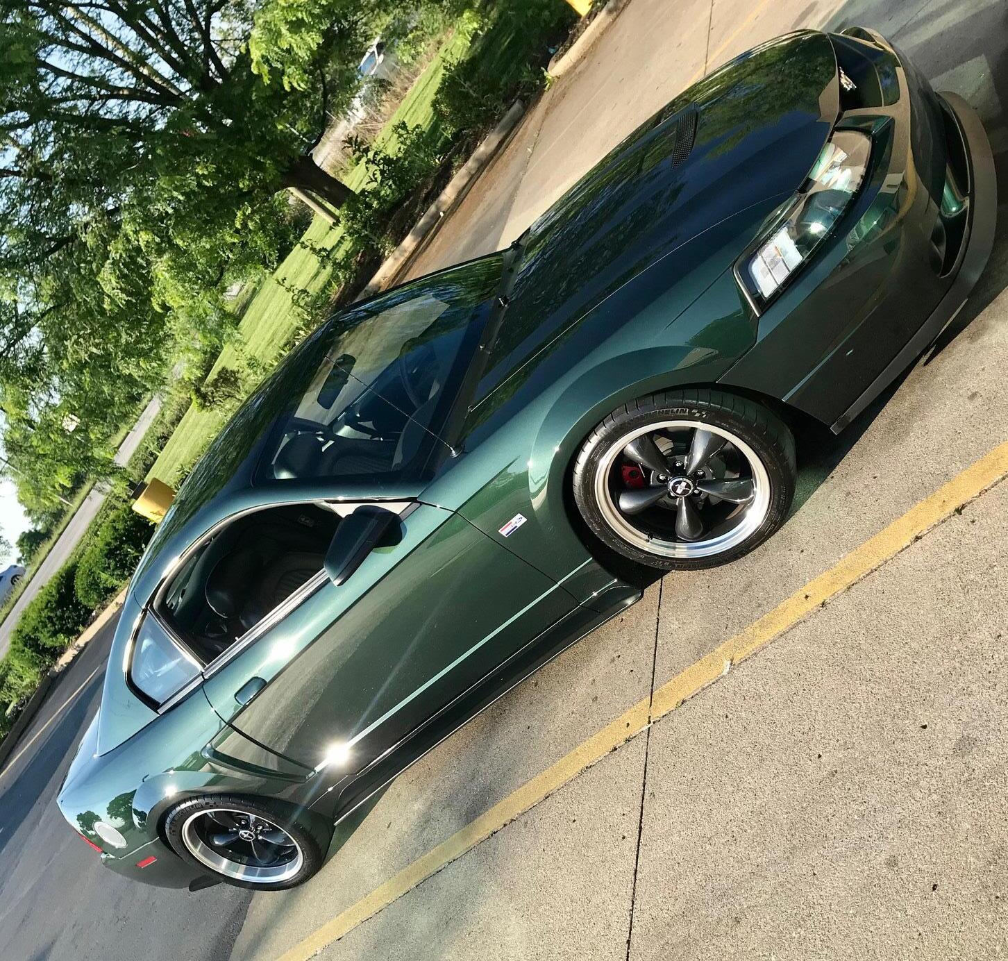 This is my 2001 Bullitt called “The Turtle”. I originally went looking for a Terminator and couldn’t agree on a price but the guy had this Bullitt sitting in the back yard. It was super rough. I bought it cheap. Acid rain, flat tires, you name it, this Mustang needed help. I was going to flip it but here we are 10 years later.