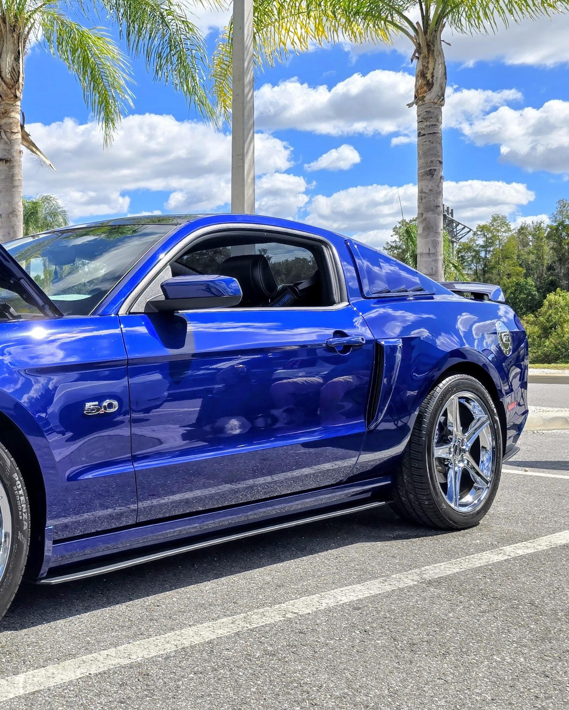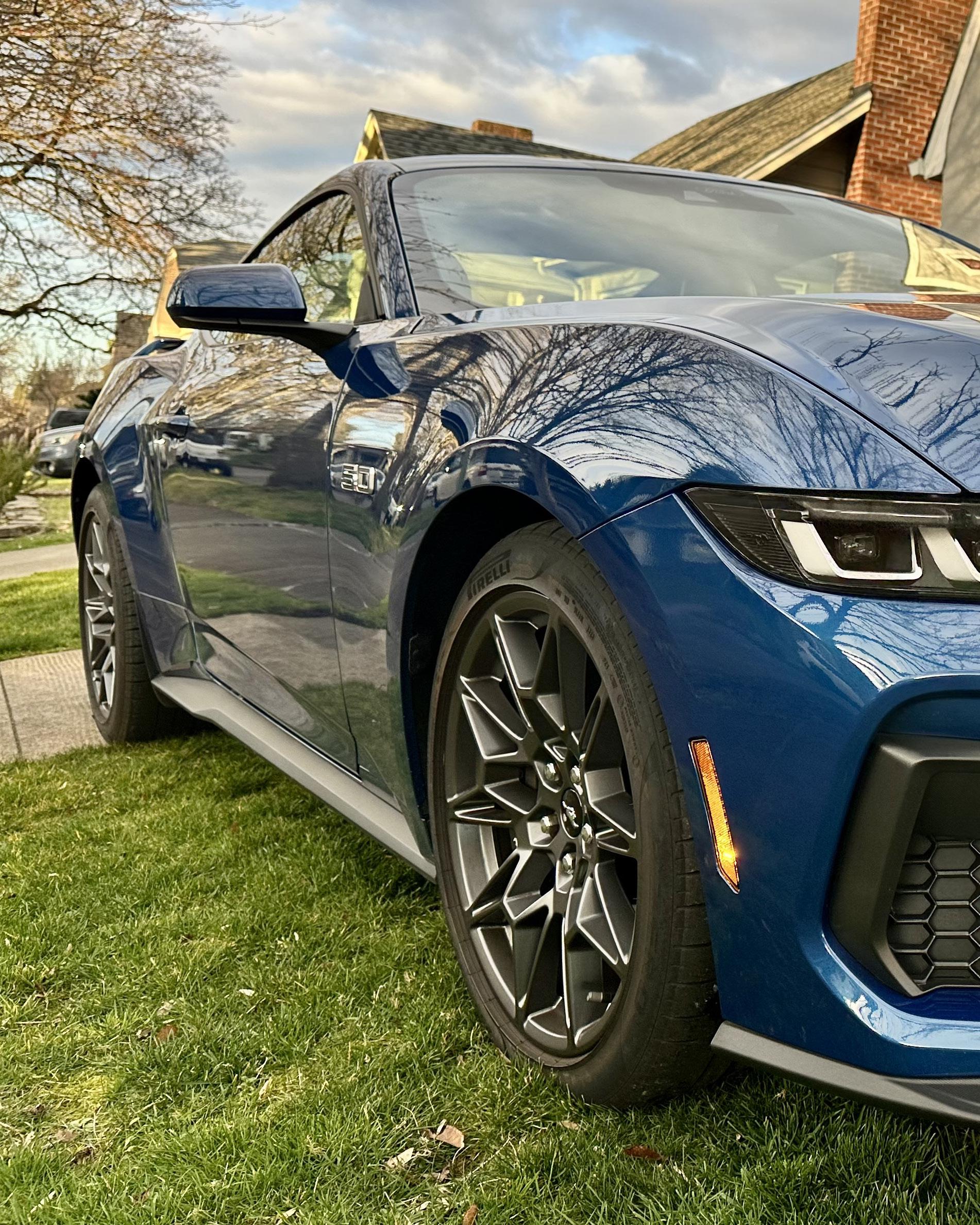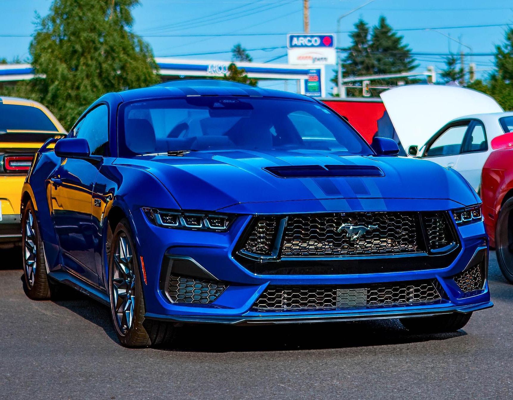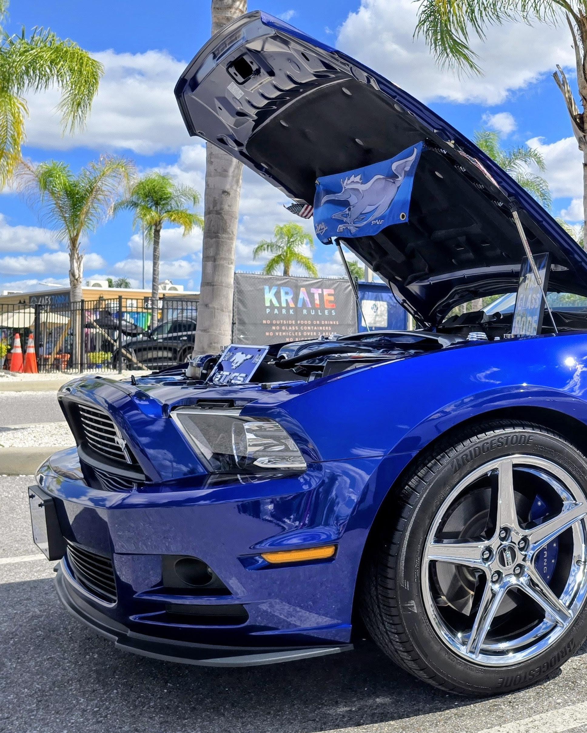 My name is Todd Bruce and I am from Portland, Oregon. This is my 2024 S650 Mustang Premium Performance Package with 6 speed manual named War Horse. It is Atlas Blue with Space Grey interior. It has a Steeda street anti hop kit with billet rear lower control arms, chassis cushioned with 80 durometer red bushings, suspension stiffened with black 90 durometer bushings, Steeda under hood track bar, Misimoto catch can, and Ford Performance vapor canisters. It also has a Procharger P1-X supercharger stage 2 with big black blow off valve as well as Kooks 3” cat back with H pipe. It makes 722.69 HP at the tires and 531.09 torque. The whoosh makes heads turn driving around and when you press the acelaratrex pedal, you are soon feeling for the decelaratrex pedal. Pre Procharger the car did a 1:27.44 lap at Portland International Speedway and saw 132 MPH on the back stretch.