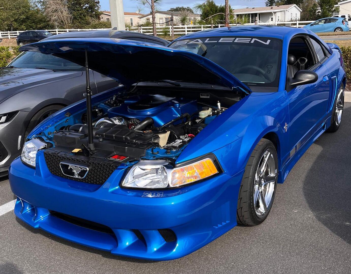 My name is Mark Sutter and this is my 2000 Mustang Saleen with Procharger and one of a kind engine cover.