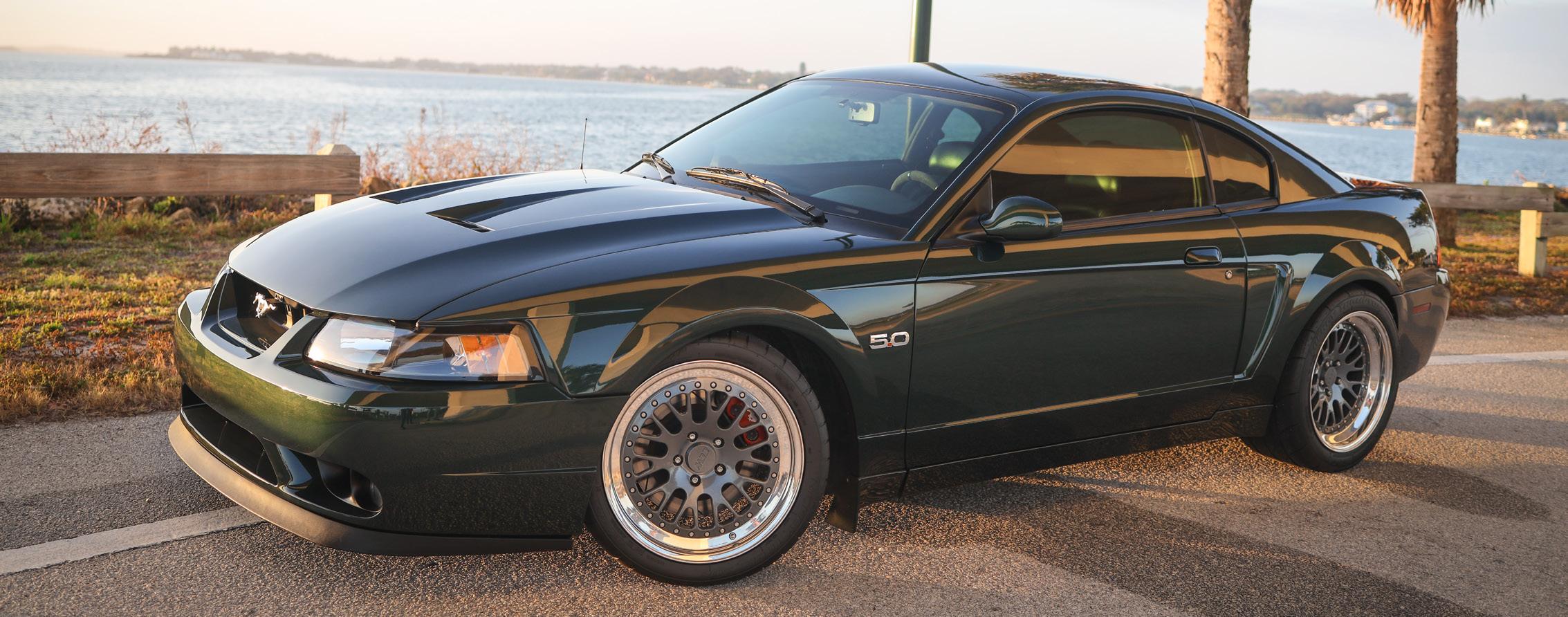 99/01 Cobra front bumper and tail lights, Cervinis 03/04 Cobra hood, 03/04 Cobra mirrors, and CCW Classics 18 x 9.5/18 x 11 wrapped in Mickey Thompsons.