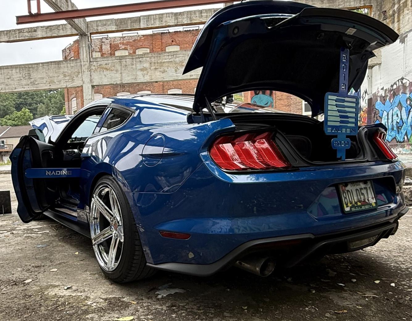 My 2018 Saleen Mustang White Label #020 “Nadine” has staggered Saleen chrome wheel (20” x 10 Front & 20” x 11 Rear), performance exhaust, Saleen tuned (Mustang GT 460 hp to 540 hp), Saleen labels throughout, Saleen lowering suspension, car show ready and several Steve Saleen signatures. STANG Magazine is awesome and was the first magazine to have my 2018 Saleen Mustang #020 in a 2019 STANG Magazine article.