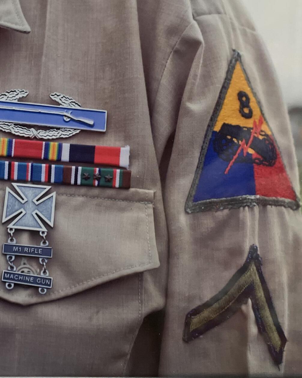 able to start to research the history behind each patch, each ribbon, and each piece of regalia. Thanks to the scrap book, I was able to get a lot of information regarding events, locations, and personal experiences which will make this tribute to Richard Deverter and the 49th Armored Infantry Battalion more unique.
