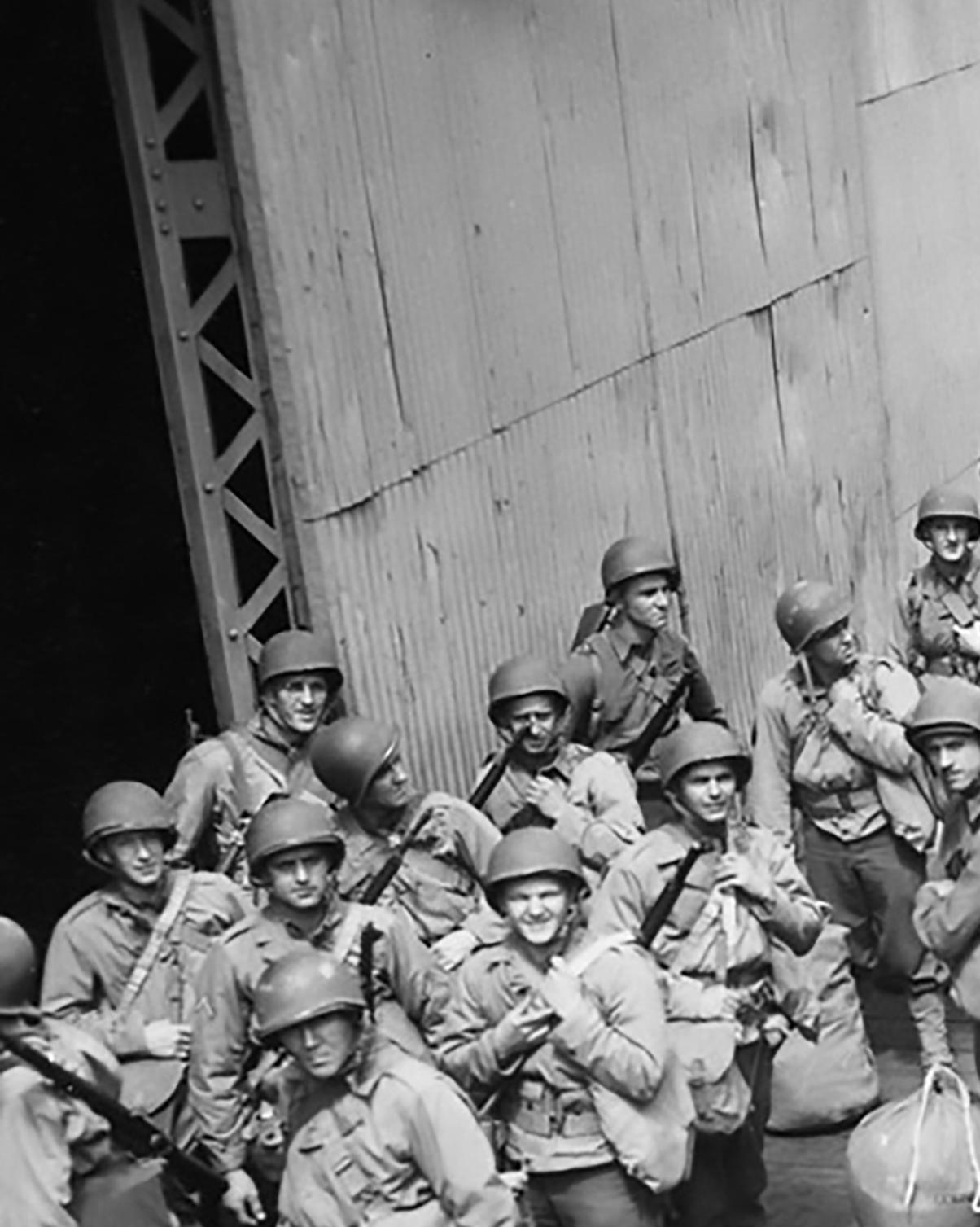From here, the “Iron Snake,” or “Thundering Herd,” division was deployed to the Netherlands in late February. In late March, they crossed the Rhine River and moved into the industrial Ruhr region, where it took part in heavy fighting. By war’s end, the 49th Armored Infantry Battalion had advanced to the Harz Mountains. As it moved into central Germany, they were involved in heavy combat and ultimately liberated Halberstadt-Zwieberge, a subcamp of the Buchenwald concentration camp, between April 12 and 17, 1945. More than 5,000 inmates were incarcerated in these subcamps, where they were forced to hollow out massive tunnels and build underground factories.