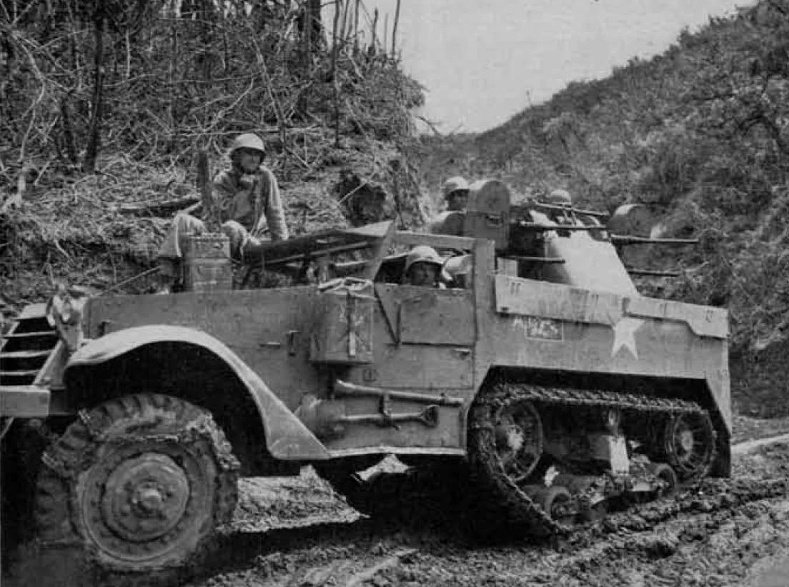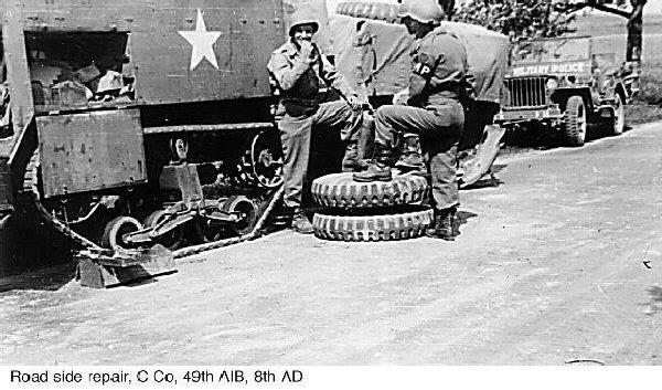 The 49th Armored Infantry Battalion was a part of the 8th Armored Division and landed in France in January 1945. They advanced rapidly to the Alsace region.