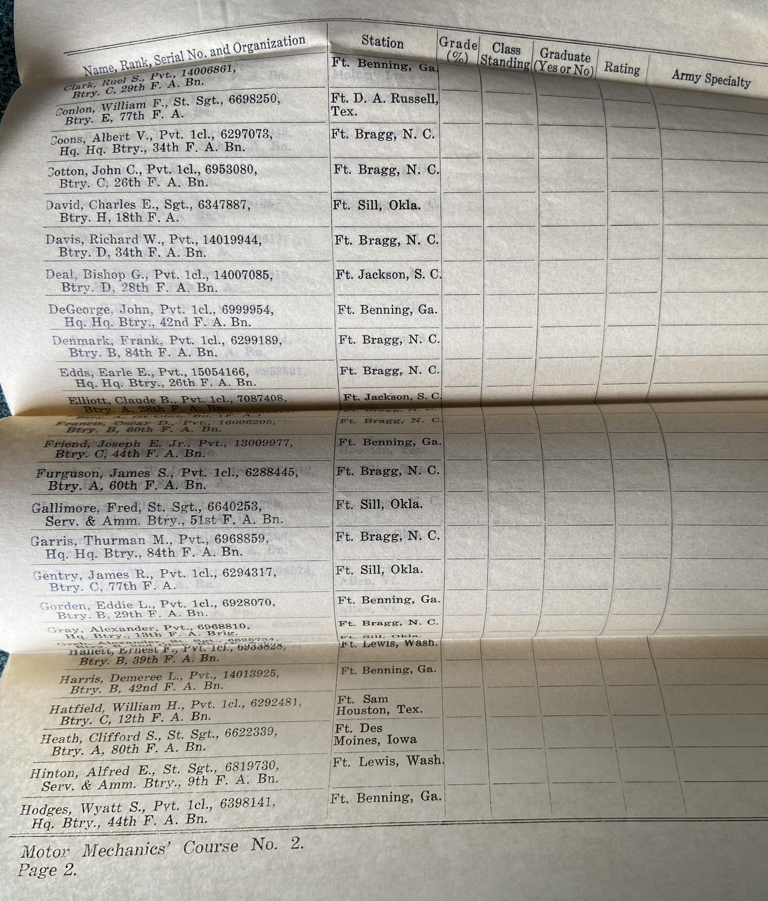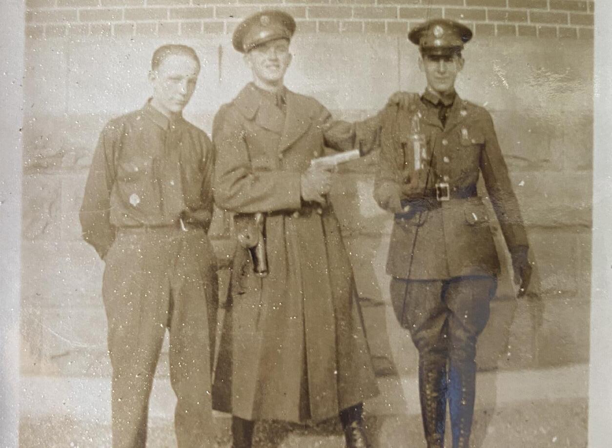 Among the stacks of photos and family heirlooms that Doug had of his grandfather was a Medical Field Service School group photo showing Horace D. Worley with his graduating class. On the back were all of their autographs. He graduated with the 3rd Platoon, 7th O.C.C. (Officer Candidate Course).
