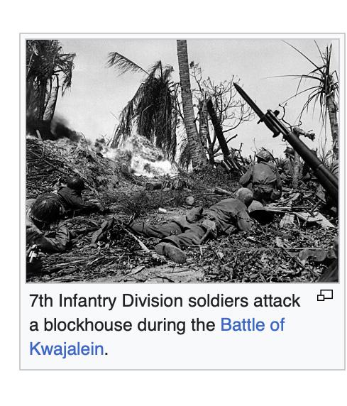 The victory put V Amphibious Corps in control of all 47 islands in the atoll. The 7th Infantry Division suffered 176 killed and 767 wounded. On February 7th, the division departed the atoll and returned to Schofield Barracks.