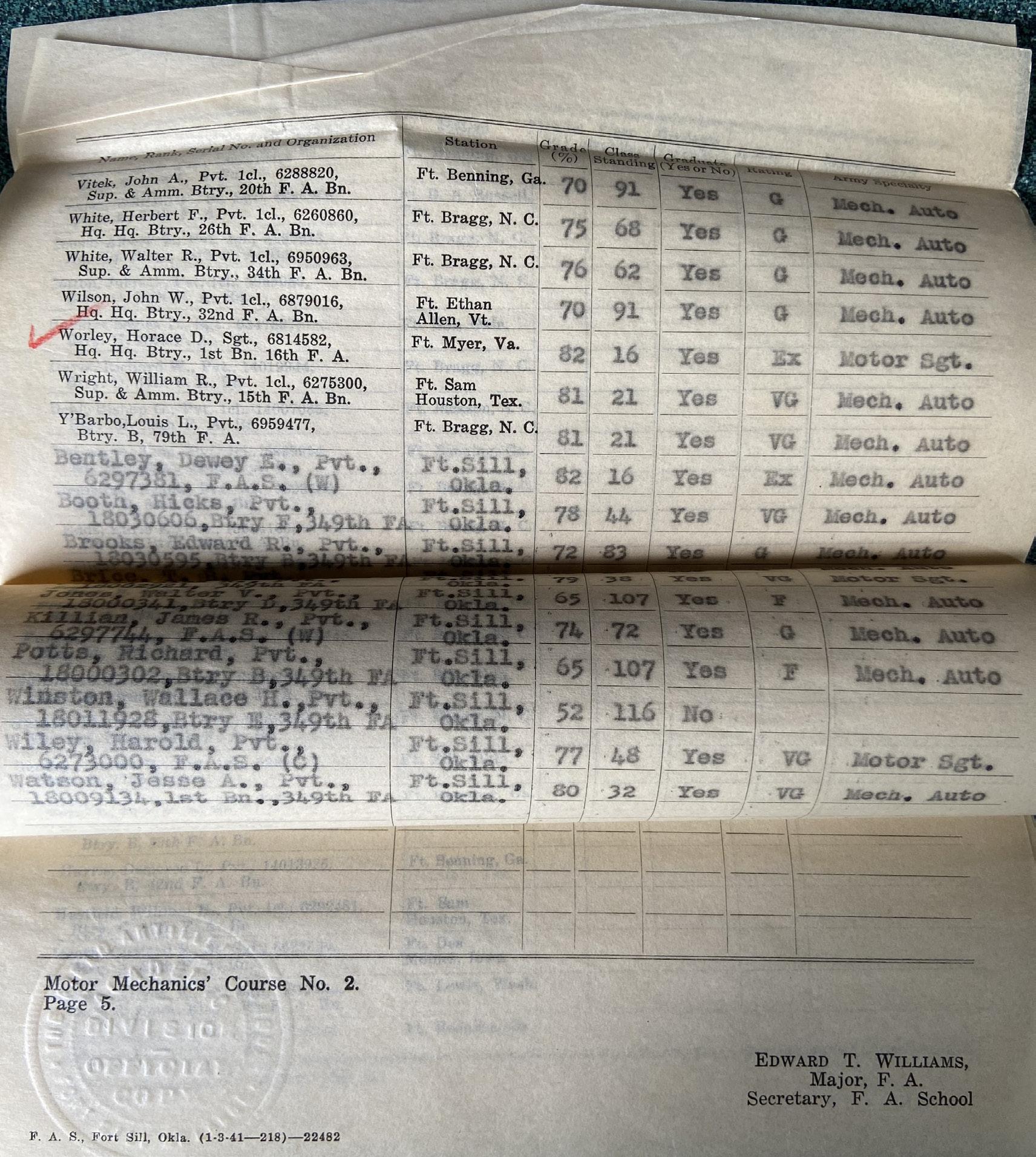 Horace D. Worley from December 4, 1941 to June 3, 1942 was enlisted in the last of the “Buffalo Soldier” units at Fort Riley, Kansas. On March 10, 1942,