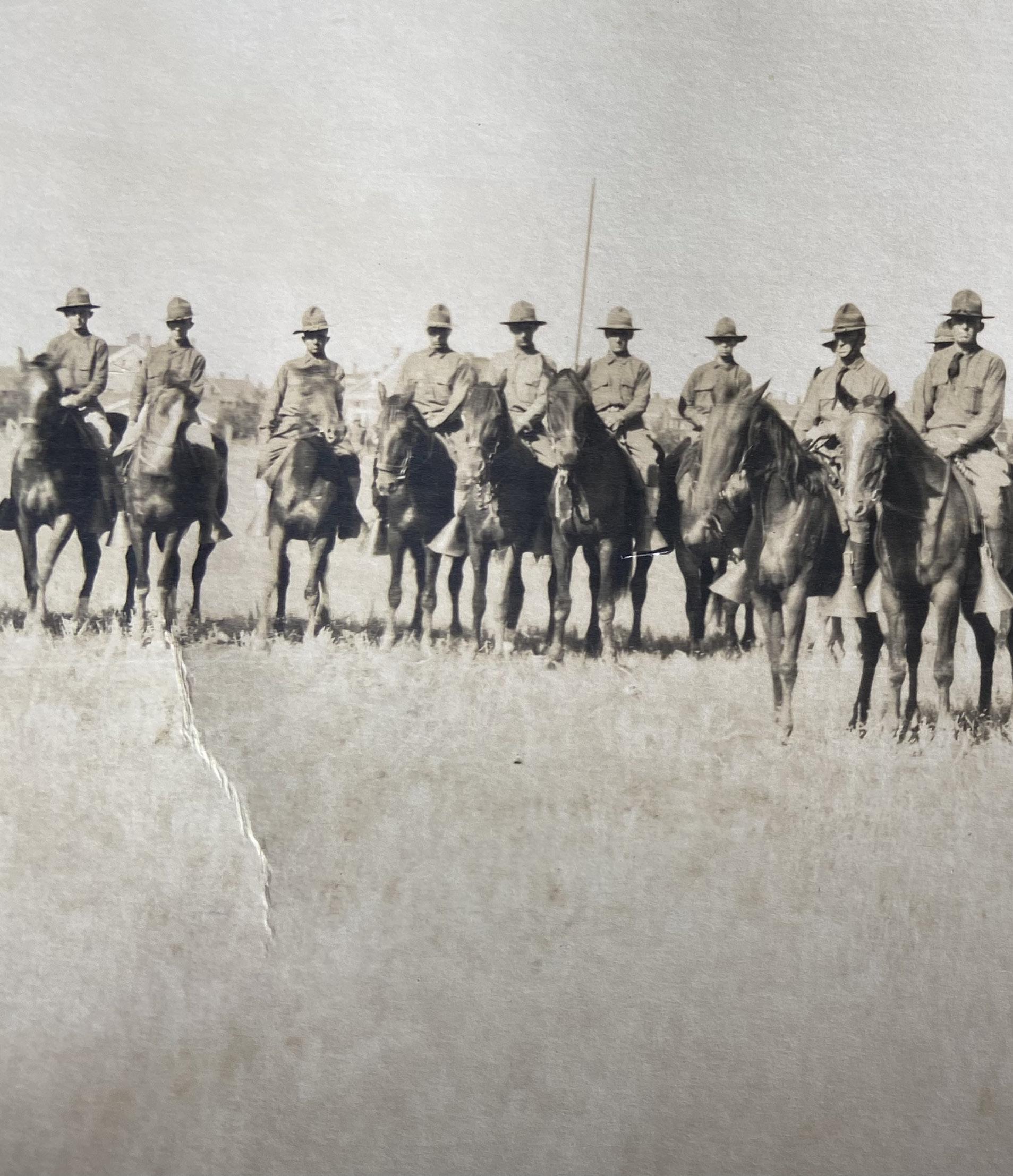 I pulled out Doug’s grandfather’s pictures once again and in the largest group photo, you can identify African American soldiers on horseback. I can’t determine if these soldiers were once from the Cavalry divisions, but it was more than enough evidence for me to wonder, and possibly confirm, that the military reorganized as they always do. Also it should be noted that on the back of Doug’s grandfather’s enlistment papers it clearly designates that his grandfather was trained in “horsemanship.”