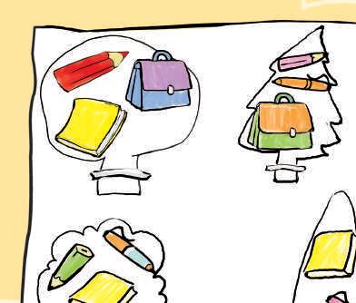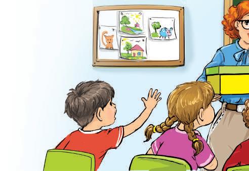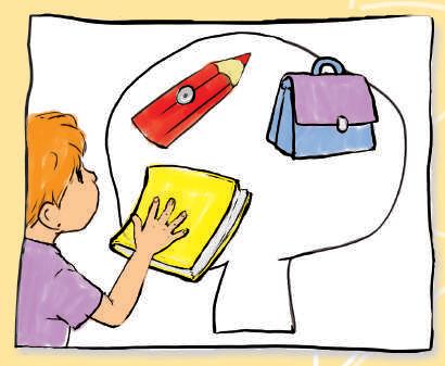 Identifying and asking about school things. Following commands. Counting objects. Matching. Creativity: making a school tree, miming, acting out, singing, saying chants, playing guessing games