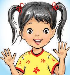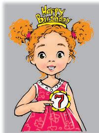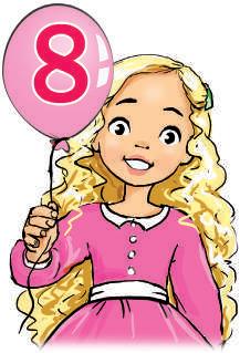 It is my birthday party. Come in. I’m happy. How old are you? — I’m seven (today). How old is he/she? — He/She is… (ten).