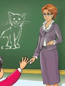 Meet Liz. She has got a pet. It is a cat. It’s grey. 1 Draw and say.