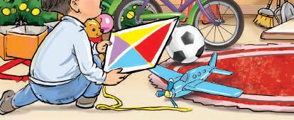 Drawing attention. Naming, identifying and asking about toys and Christmas objects. Describing toys using colours as adjectives. Creativity: making a Christmas card, acting out, singing