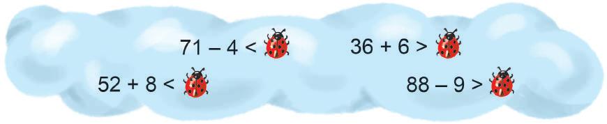 З’ясуй, які числа «сховалися» за квітками. 48 + = 49 + 4 = 76 80 – = 70 70 + = 75 64 – = 63 – 3 = 51 50 + = 70 59 – = 50