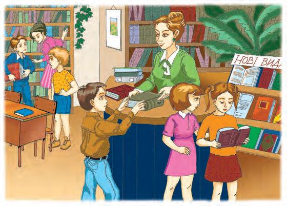 орач, вантаж, убогість, чорногуз, тінь, з’їжа**, людина, князь, старість, кущ, тьмяність. 2. Підкресліть у кожному утвореному слові другу від початку букву. Із цих букв складете вислів Т. Шевченка. Запишіть його. 3. Поясніть правопис іменників в останній колонці. 17* . Перепишіть текст. Слова, що в дужках, поставте у потрібному числі й відмінку. Закінчення підкресліть. Сьогодні я був у (бібліотека). Там стоять (стелаж) з (книга). На (стіна) написано: «До (книжка) ставтеся з (любов)!» Бібліотекарка запропонувала мені багато цікавих (книжка). Я вибрав собі 5. Іменник 19
