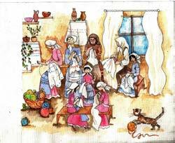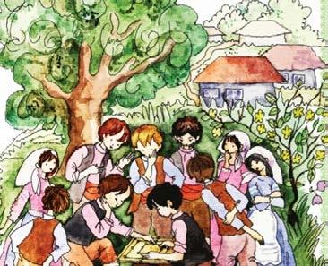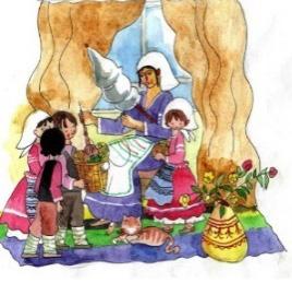 2. Yazdırêrız personajların işlemini. Aylä toplanmış kapöönsündä da yapmış Kaar Babusunu. Ana-boba uşaklarınnan şen oynêêrlar hem kışa sevinerlär.