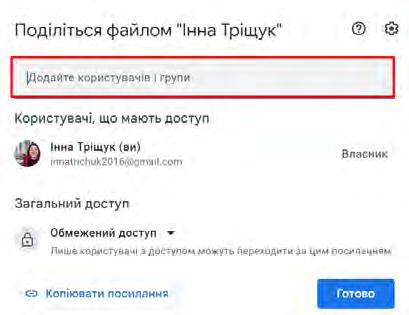 8. Скопіюйте та надішліть покликання на електронну адресу Вашому вчителеві/Вашій вчительці.