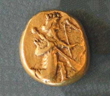 Монета з Пантікапея із зображенням крилатої істоти — сімаргла, що належить до іранської міфології.