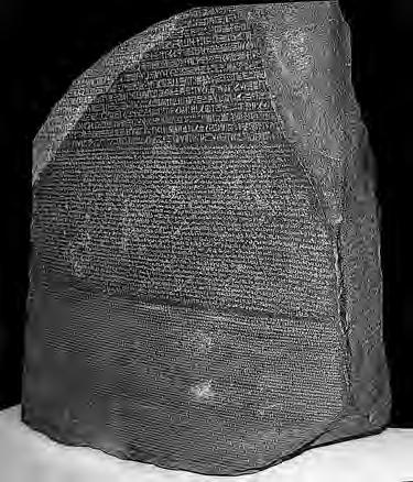 Зіставляючи ці тексти, вчені ХІХ ст. ЖанФрансуа Шампольйон та Томас Юнг розшифрували давньоєгипетські ієрогліфи (на камені — вгорі).