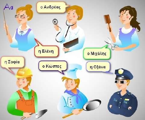Γεια σας, Μιχάλη και Ελισάβετ! Με λένε Γιώργο. Καλημέρα, παιδιά! Το όνομά μου είναι Ελένη. Ερωτήσεις
