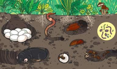 Ці речовини та кисень є необхідними для життя як рослин, так і тварин. Крім того, тварини можуть живитися рослинами або іншими тваринами. Рештки живих організмів (рослин і тварин) потрапляють у ґрунт, де розкладаються бактеріями і грибами.
