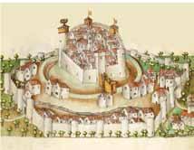 Пригадайте особливості забудови середньовічних міст. Уважно розгляньте малюнок і визначте елементи, з яких складалися середньовічні замки-фортеці. Складіть коротку розповідь про середньовічний замок.