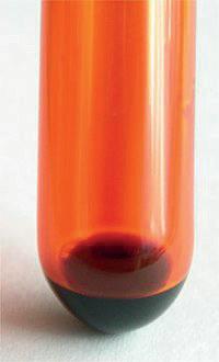 кислота. Зрозуміло, що рідини змішалися й у результаті їхньої взаємодії утворилася синьо-фіолетова пара, яка перетворювалася на чорно-фіолетові кристали з металевим блиском і специфічним
