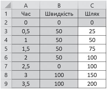 процесорі. З таблиці видно, що, починаючи з деякого кроку, значення висоти y набу-
