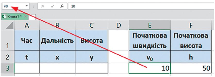 Отже, нам потрібно шукати координати x ( дальність, де буде перебувати м ’яч під час польоту) та y (висота , яка буде постійно зменшуватися з