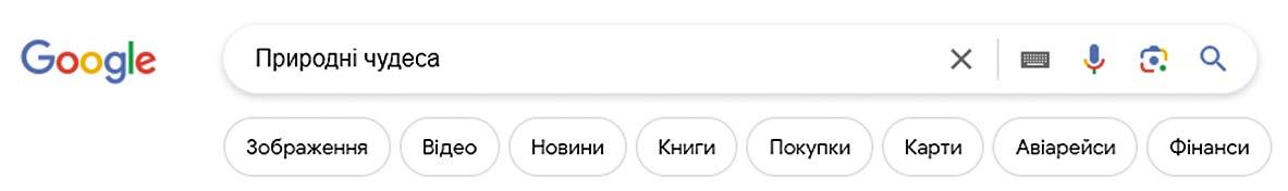 Мал. 1.1. Кнопки для фільтрування результатів пошуку в пошуковій системі Google