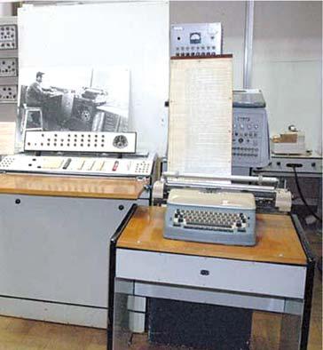 Науково-виробниче об’єднання «Електронмаш» було створено в Києві 1965 року. Його основний напрям роботи – промисловий уу випуск так званих керуючих обчислювальних комплексів – комп’ютерів, призначених для автоматизації процесів управління різними галузями господарства. Одним з таких комп’ютерів була ЕОМ М4030 (1973 р.) Її модифікована версія (М4030-1) була використана для створення автоматизованої системи управління (АСУ), яка обслуговувала проведення Олімпіади-80 Прототипом персональних комп’ютерів стала розроблена в 1958–1962 роках під керівництвом академіка В.М. Глушкова ЕОМ «Промінь». Вона широко використовувалась у проєктних закладах для здійснення розрахунків різноманітних конструкцій, моделювання процесів тощо. ЕОМ М4030 В М Глушков за пультом ЕОМ «Промінь» Перший в Україні інформаційно-керуючий комплекс «Дніпро-2» використовувався для розв’язування широкого кола завдань: планування і прогнозування в економіці, проведення інженерних розрахунків, керування виробничими процесами тощо. Його конструкція давала р у р р р р у змогу приєднати до 96 різних пристроїв для введення або виведення даних. ЕОМ «Дніпро 2» -2» М.М. Амосов про штучний інтелект: «Людинатворець створює моделі, утілює їх у речі, слова або формули. Д умається, якщо візьметься колектив учених і буде складати свої моделі певним чином, то може вийти штучний розум, розумніший, ніж кожен з його творців і всі вони разом узяті. Усе питання в цьому самому “складанні певним чином”, у технології втілення та складання моделей. Зараз немає технології “складання думок” у діючу модель розуму, але є вже її намітки... Штучний розум буде –у кібернетиків сумніву немає». М.М. Амосов ІНФОРМАТИКА В УКРАЇНІ