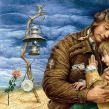 щоб дати мені час для втечі, лишився на місці, взявши на себе укуси розлючених комах. Коли ж він нарешті побіг, то загубив свої окуляри. Я отримала тільки один укус — одне жало, вище ліктя. А тато дістав тридцять дев’ять укусів — і жал, по всьому тілу. Ми полічили їх потім, у ванні.(…) Десь перегодом, після обід тато знову подався на пустирище — знайти свої окуляри. Казав, Кадр із мультфільму «Кораліна у світі кошмарів» (режисер Генрі Селік, США, 2009)