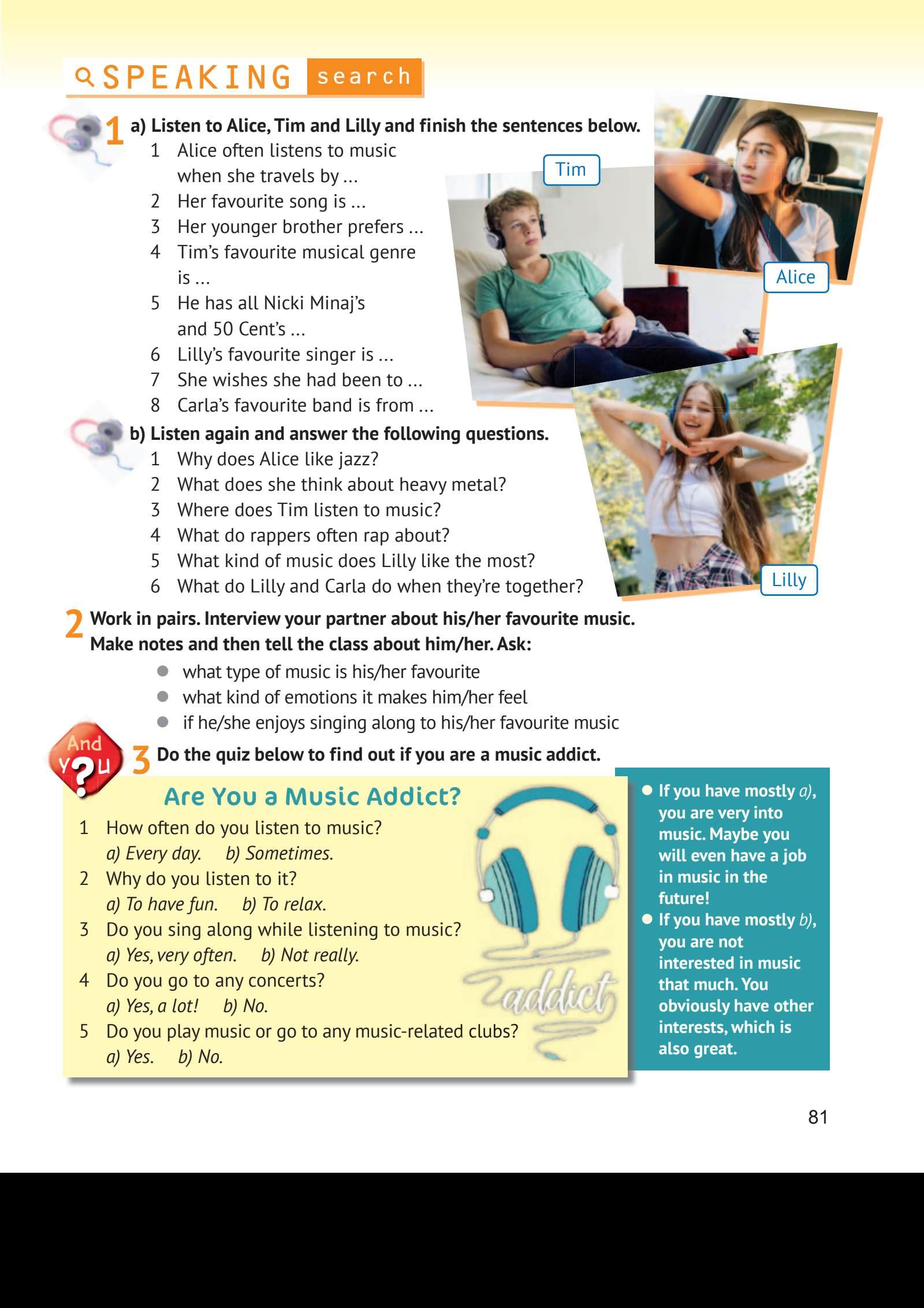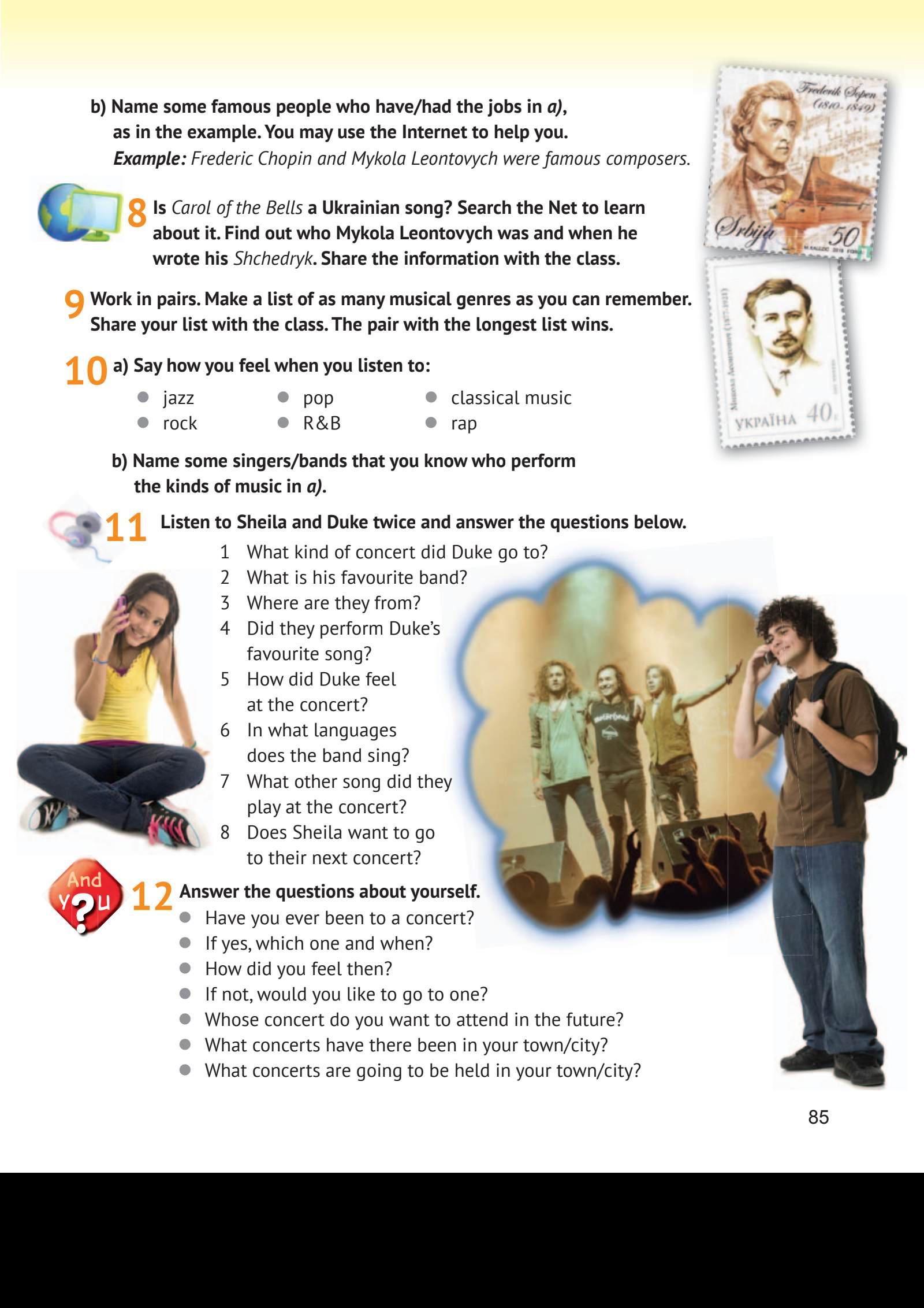 Delivering a presentation about a famous band/favourite musical genre. Interviewing a person about music in their life. Sharing an impression of a concert.