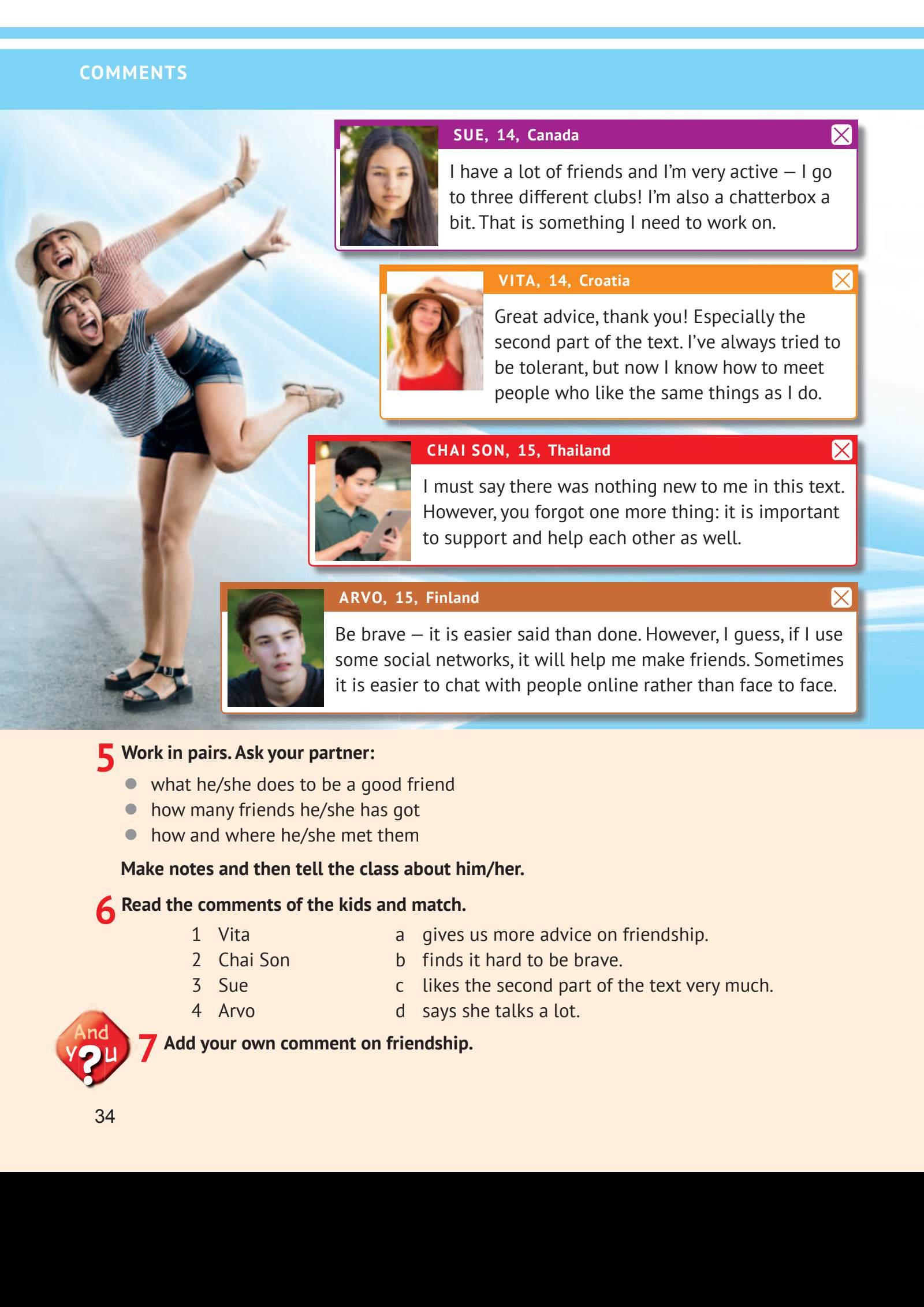 Asking and answering about skills and interests. Giving advice on how to make friends. Expressing an opinion on different types of communication. Describing a friend.