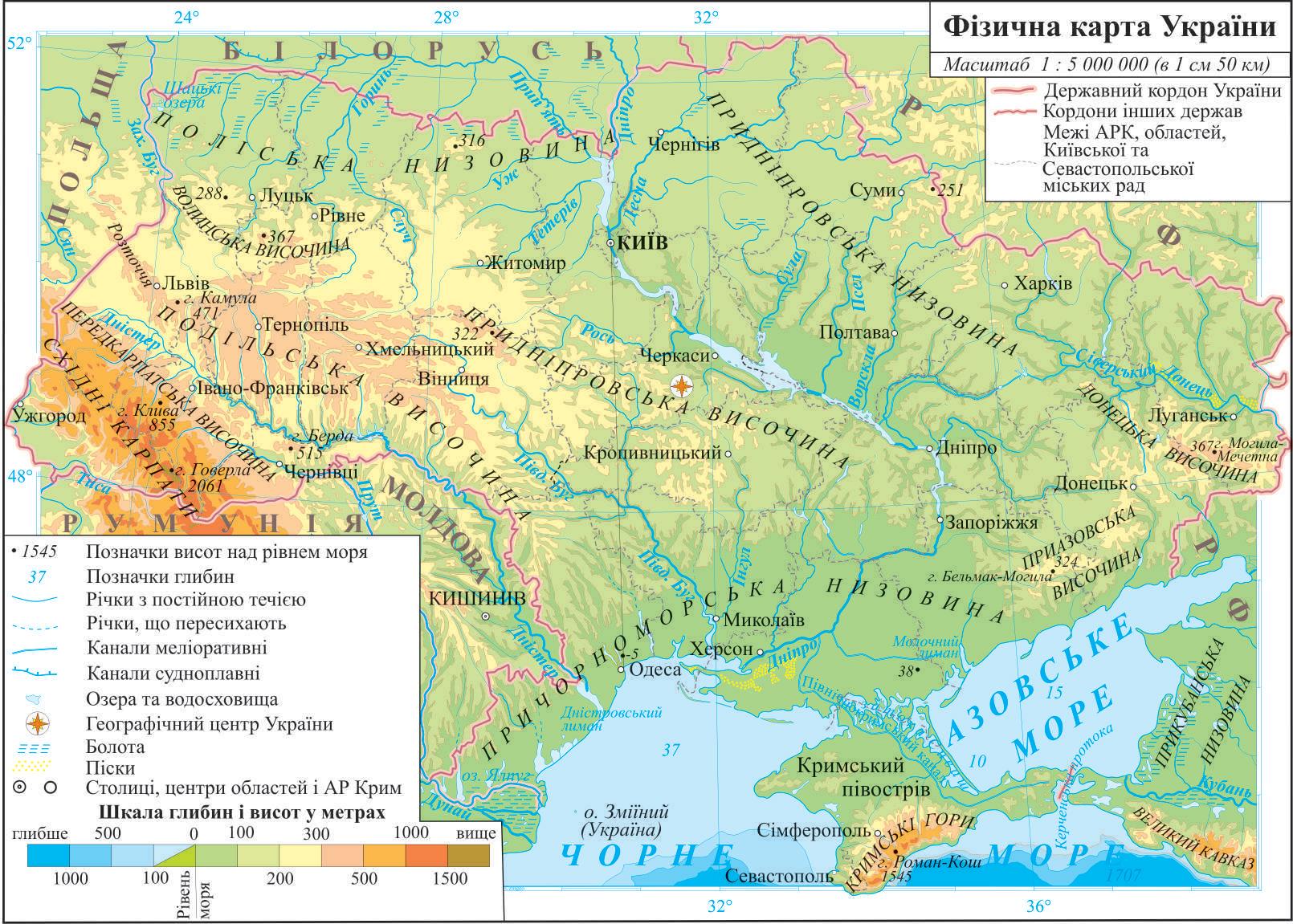 на просторах України (мал. 1). Вивчаючи природничу географію України, ви ознайомитесь із фізико-географічним положенням та відліком часу в Україні та світі, рельєфом, геологічною будовою, кліматом, водами суходолу, ґрунтами, рослинним і тваринним світом території нашої країни, природоохоронними об’єктами, характерними рисами великих екосистем суходолу та морів, що омивають її територію. Досліджуючи природу України, ви засвоїте багато нових понять, закономірностей, що допоможе вам