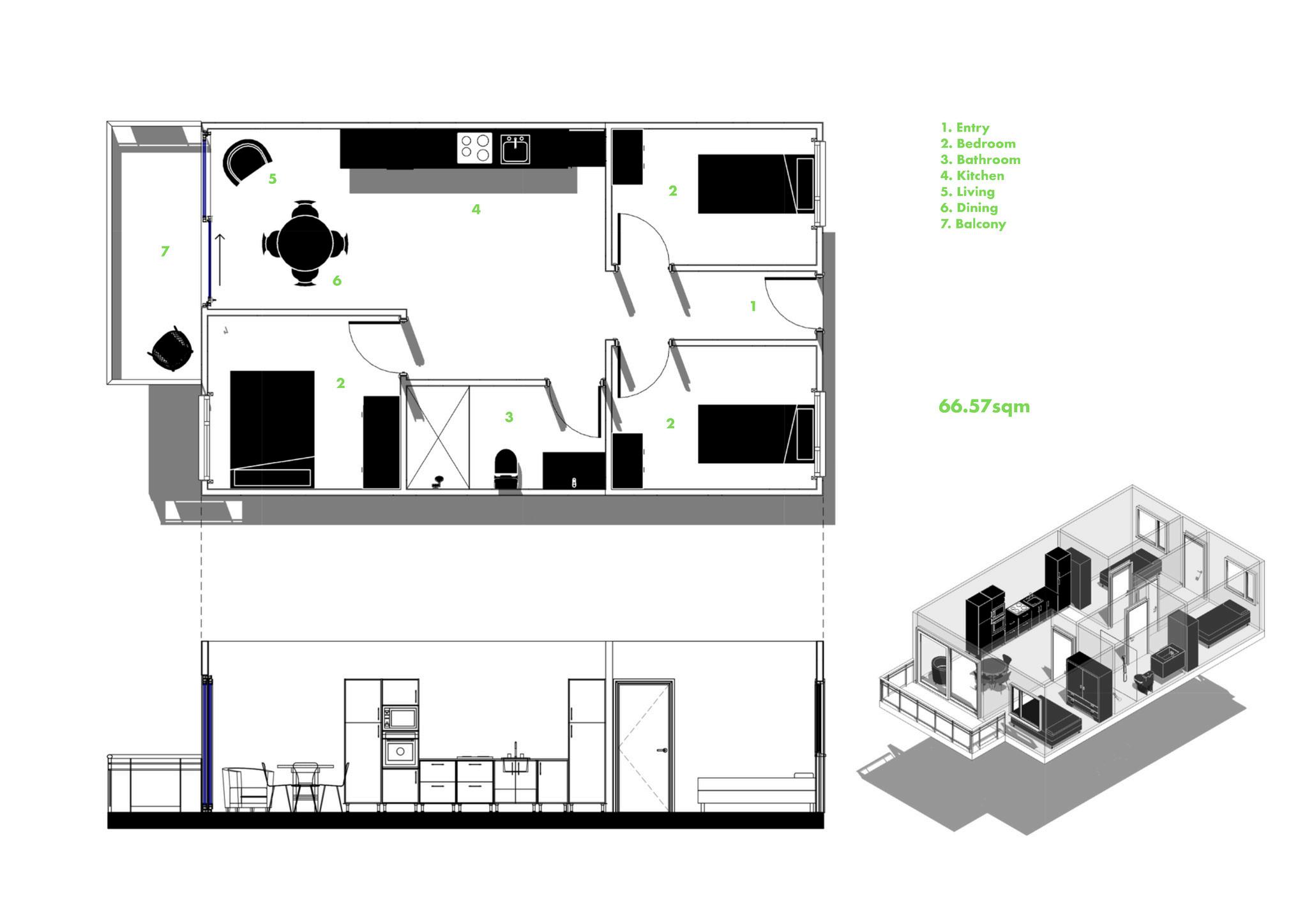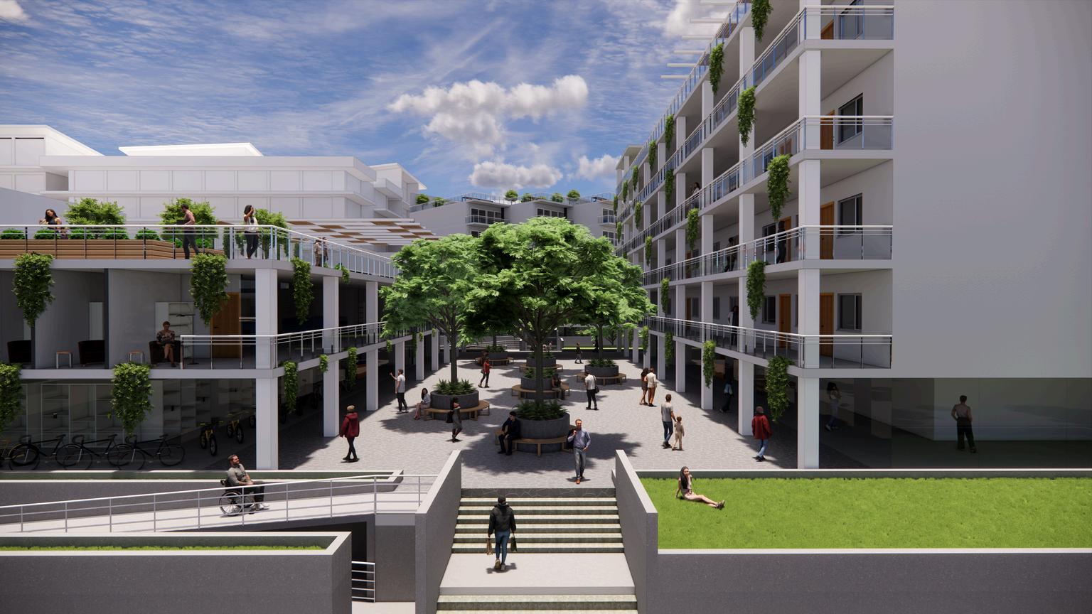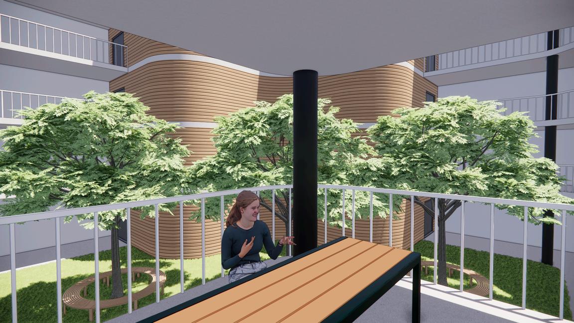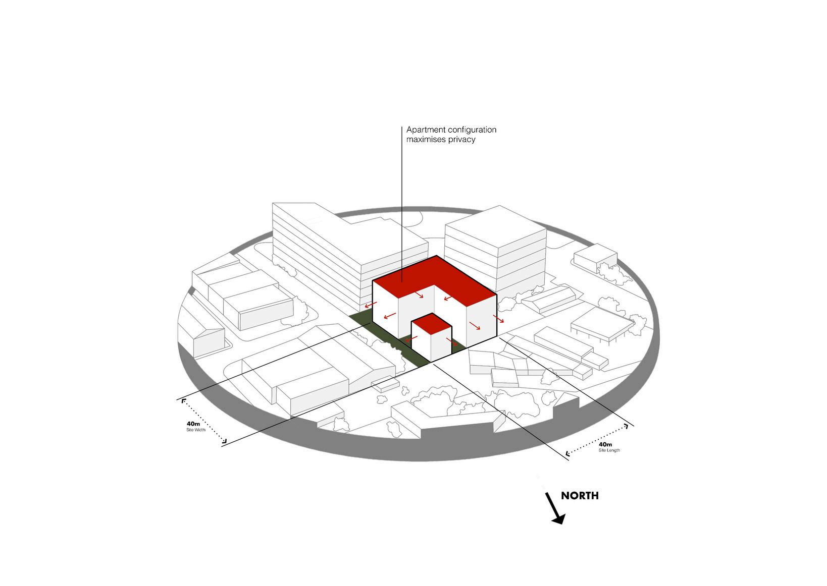 This project envisions a resilient, interconnected multi-residential community in Woolloongabba that operates as an extension of the adjacent social housing building. Through strategic north-west orientation toward the Gabba and Brisbane City, elevated floodresponsive design, and a central courtyard, the design prioritises environmental performance, wellbeing, and visual connectivity. Public, semi-public, and private realms are carefully layered to encourage interaction, while resident-led initiatives, such as bicycle refurbishment, creative studio exhibitions, and gardening workshops, generate income and activate shared spaces. Together, the two buildings form a cohesive urban network that redefines housing as productive, sustainable, and socially integrated.