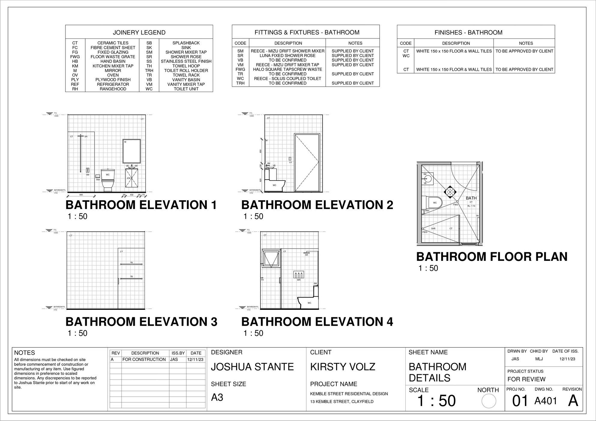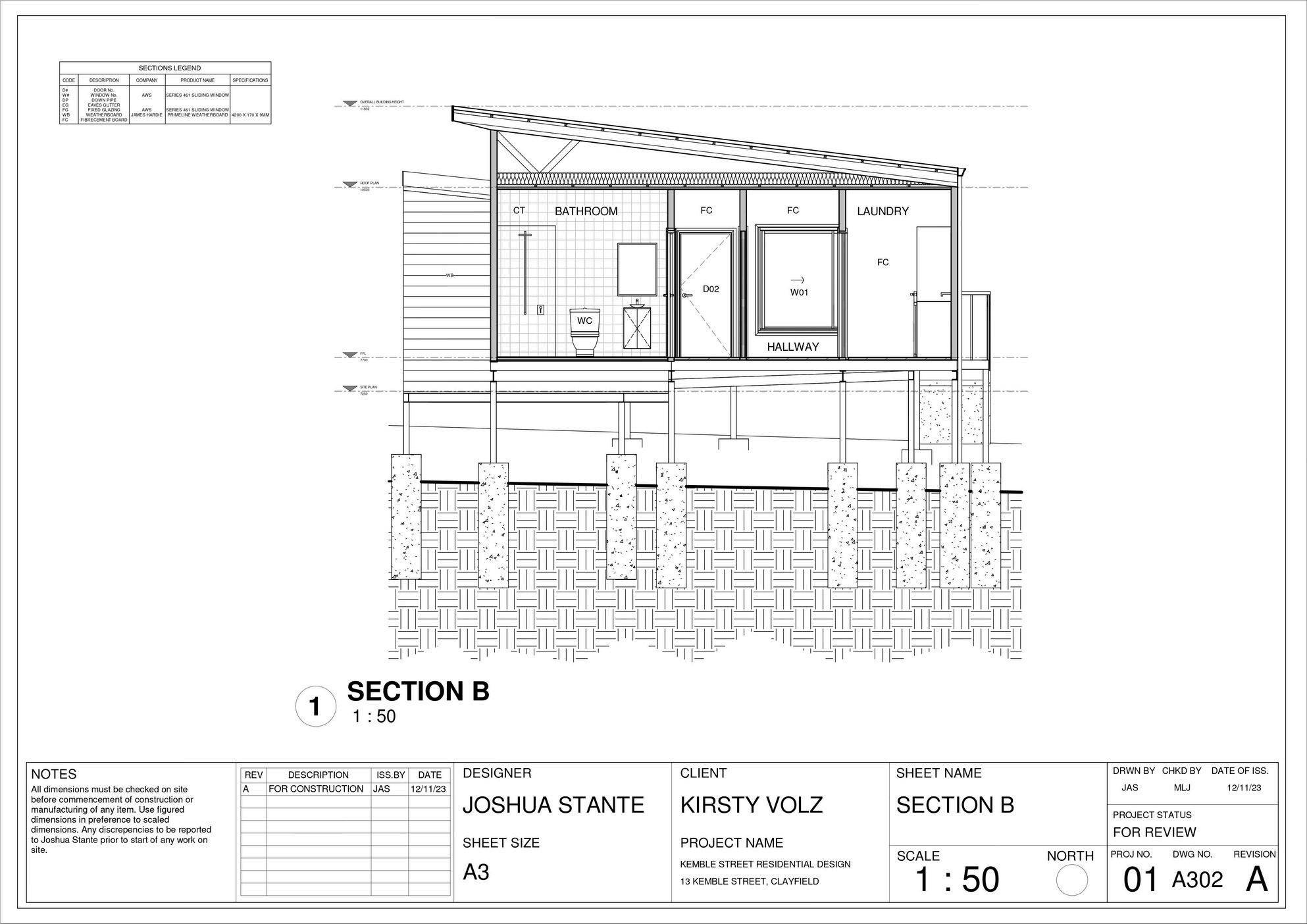 This project comprises a detailed set of construction documents developed in accordance with the Brisbane City Council legislation, the Queensland Development Code, the National Construction Code, and the Livable Housing Australia (LHA) Guidelines. The documentation responds specifically to the constraints of a smallscale residential lot within a designated flood-affected area, integrating regulatory compliance with considered architectural resolution. Particular attention was given to flood responsive design measures, fire separation controls, setbacks, accessibility provisions, and buildability, ensuring the proposal was both compliant and construction-ready.