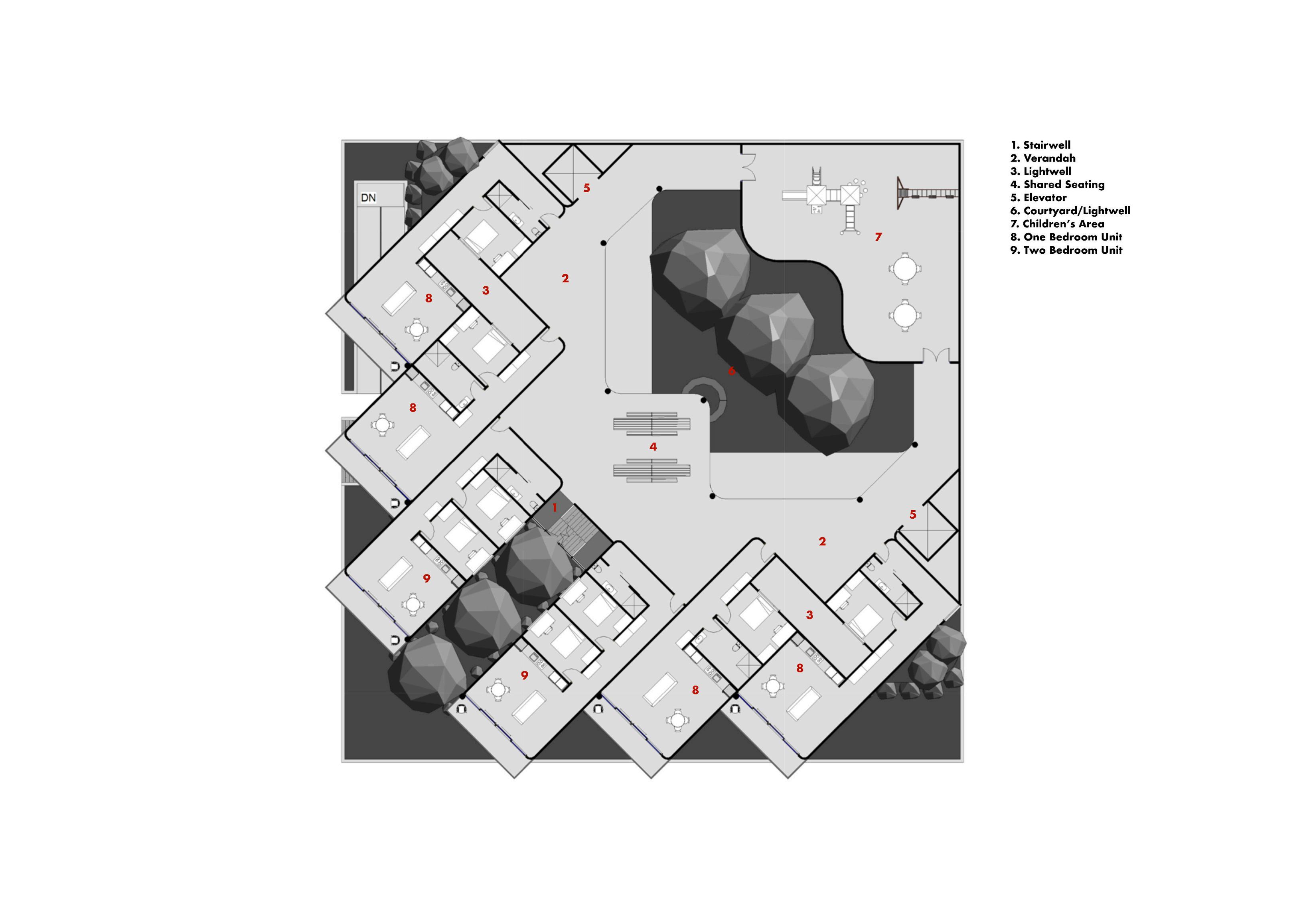 Vista Collective is shaped by a diverse group of residents whose occupations, family structures, and personal interests directly inform the spatial organisation of the building. Rather than designing generic apartments, each dwelling is driven by specific personal and professional needs, while shared semipublic and public spaces emerge from the collective skills and ambitions of the community. This approach challenges conventional housing models by linking private life with productivity, collaboration, and income generation. The occupants therefore act as a conceptual framework for aggregation, ensuring the architecture supports both individual autonomy and a cohesive, self-sustaining community.