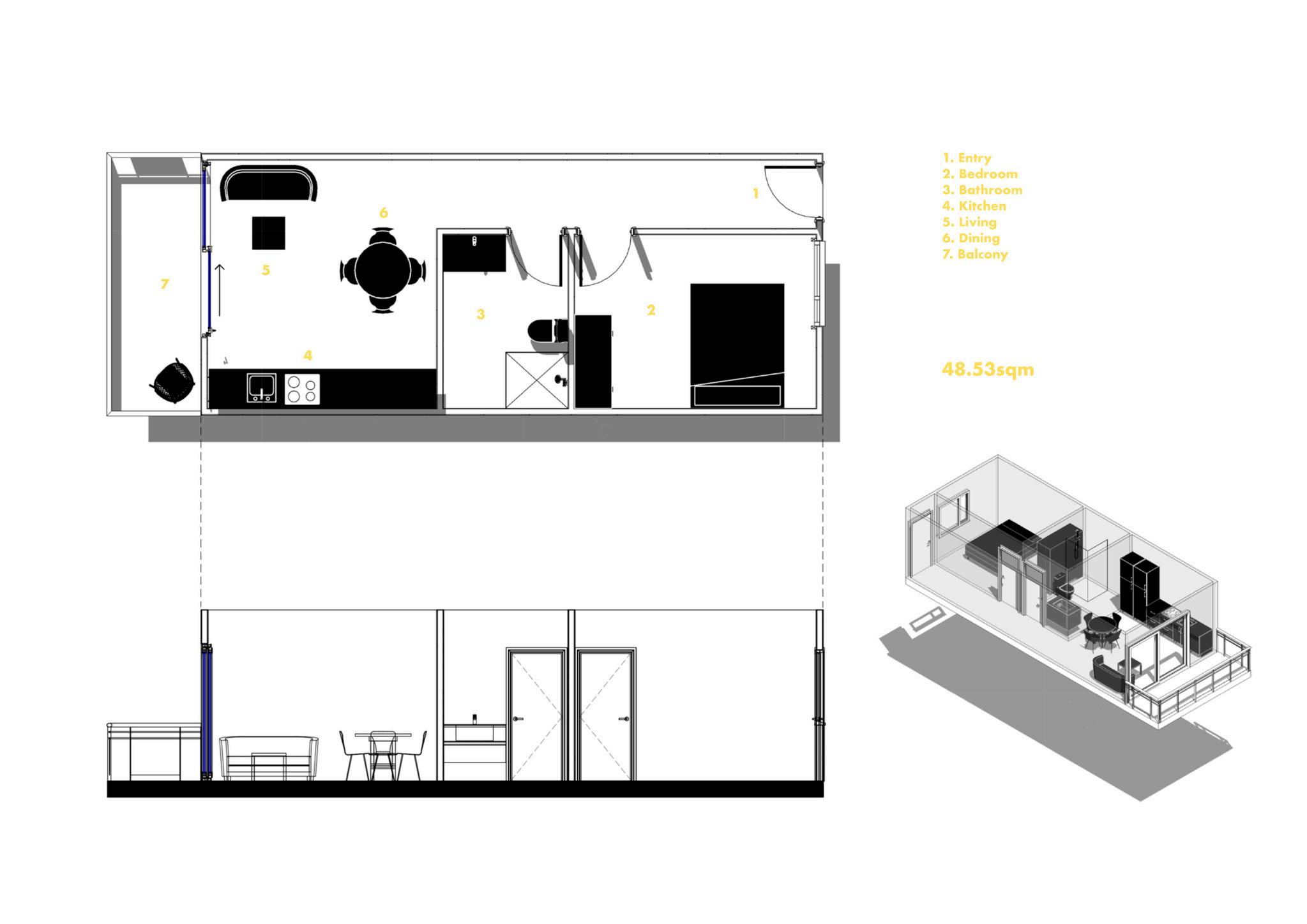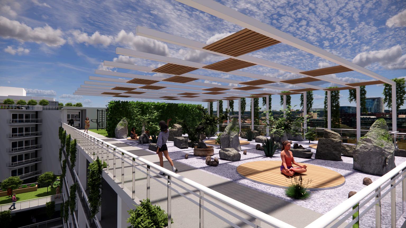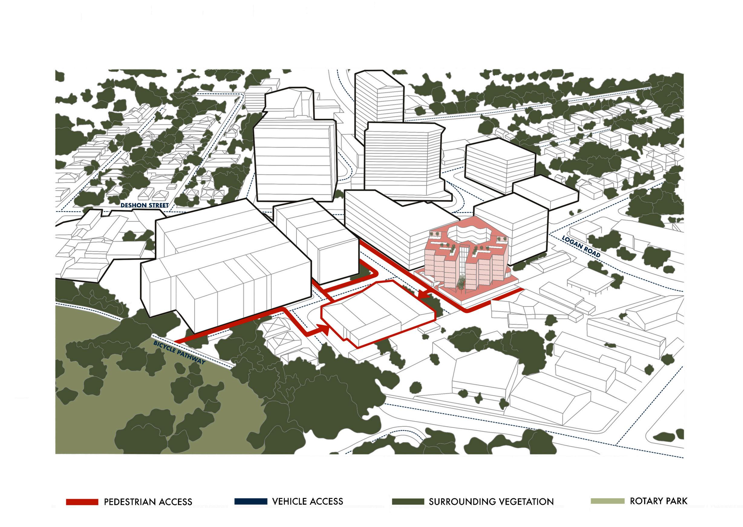 This project envisions a resilient, interconnected multi-residential community in Woolloongabba that operates as an extension of the adjacent social housing building. Through strategic north-west orientation toward the Gabba and Brisbane City, elevated floodresponsive design, and a central courtyard, the design prioritises environmental performance, wellbeing, and visual connectivity. Public, semi-public, and private realms are carefully layered to encourage interaction, while resident-led initiatives, such as bicycle refurbishment, creative studio exhibitions, and gardening workshops, generate income and activate shared spaces. Together, the two buildings form a cohesive urban network that redefines housing as productive, sustainable, and socially integrated.