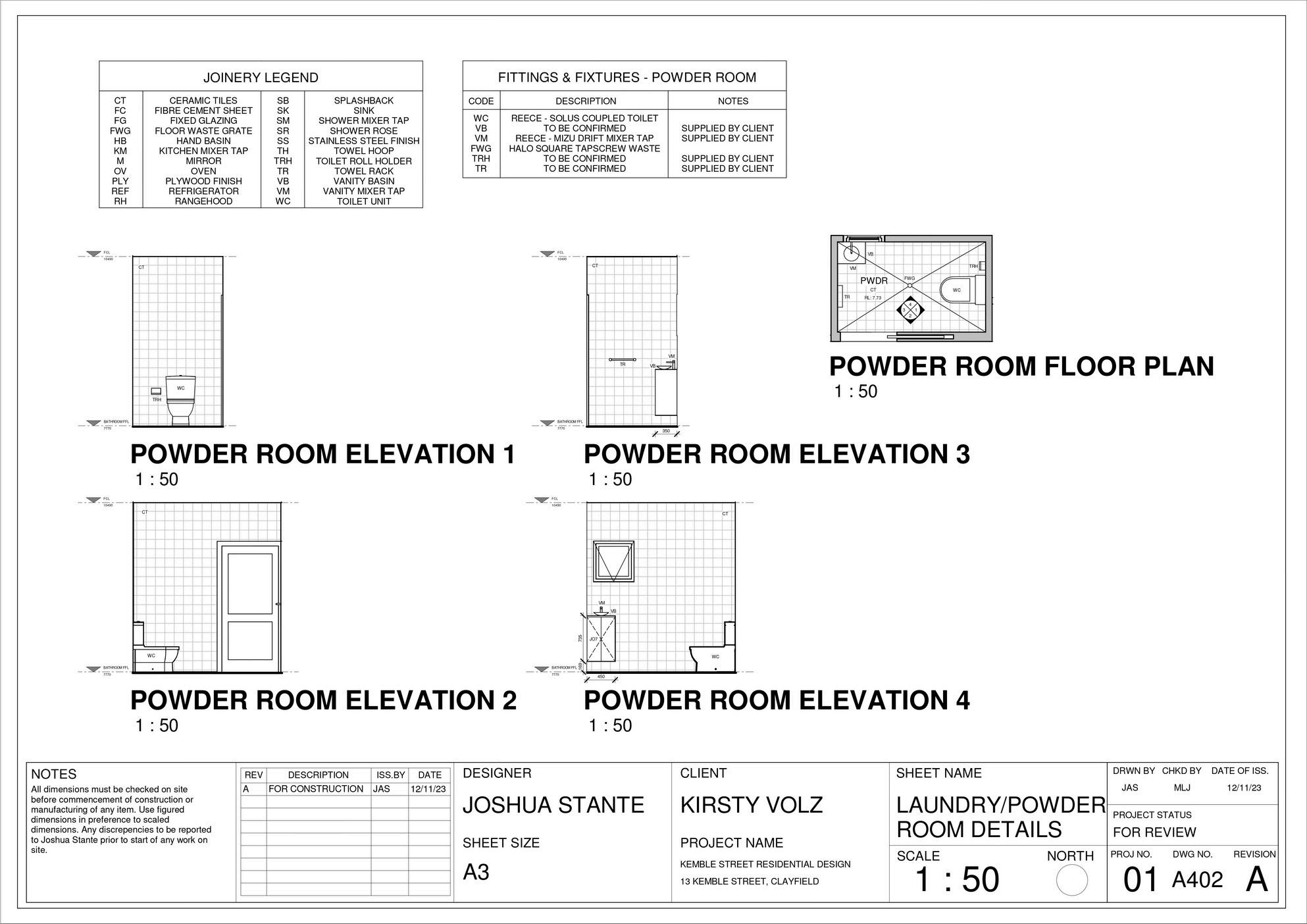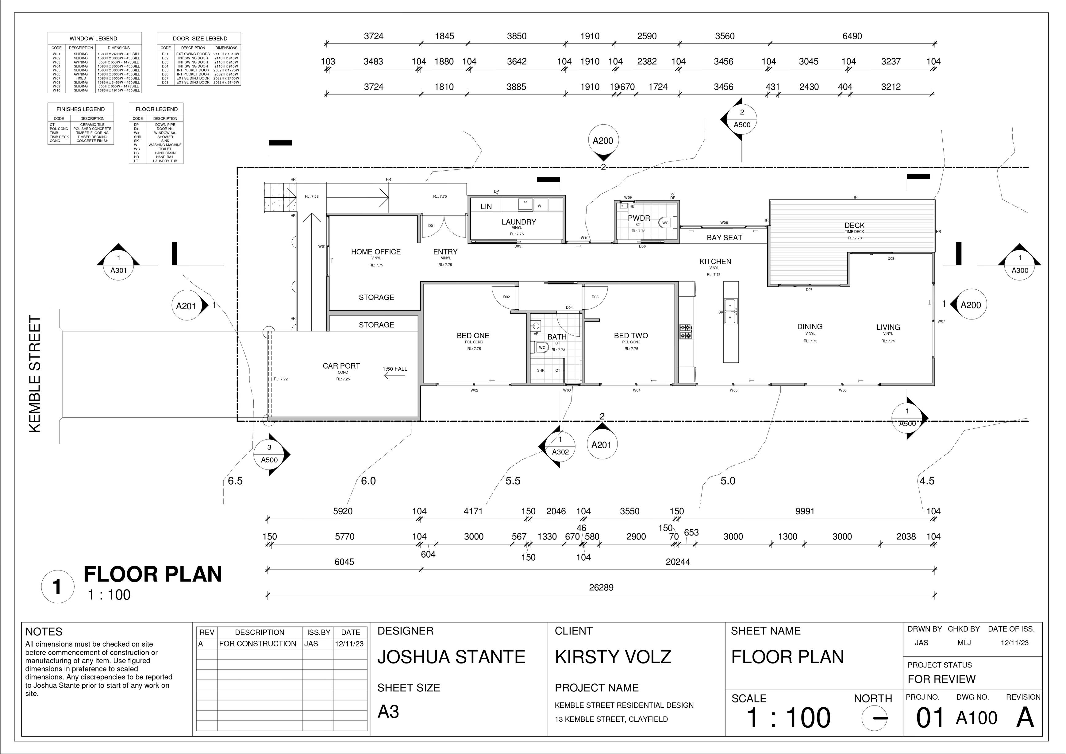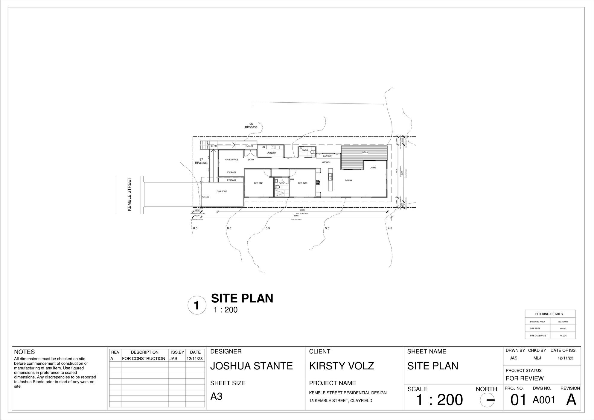 This project comprises a detailed set of construction documents developed in accordance with the Brisbane City Council legislation, the Queensland Development Code, the National Construction Code, and the Livable Housing Australia (LHA) Guidelines. The documentation responds specifically to the constraints of a smallscale residential lot within a designated flood-affected area, integrating regulatory compliance with considered architectural resolution. Particular attention was given to flood responsive design measures, fire separation controls, setbacks, accessibility provisions, and buildability, ensuring the proposal was both compliant and construction-ready.