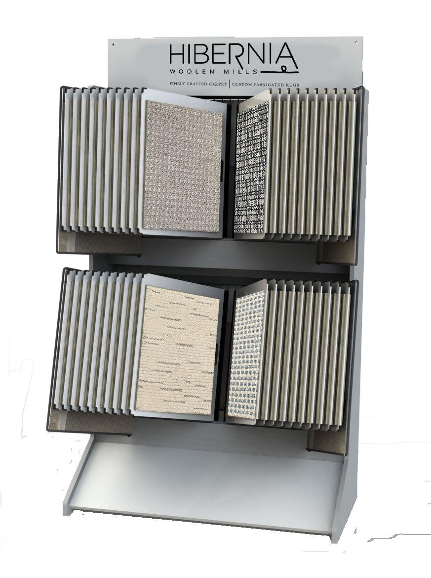Antrim’s two-tier display offers an attractive and efficient way to merchandise its exceptional product line. The display unit features 60 product boards (22”x28” board size), including current & new introductions. The two-tier design allows for enhanced product viewing and accommodates future products as the line expands.