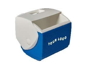 This versatile 9-can hard-sided cooler keeps snacks and drinks cool with THERMECOOL™ foam. Its tent-top design, portable size, and push-button lid make it convenient for one-handed operation on the green.