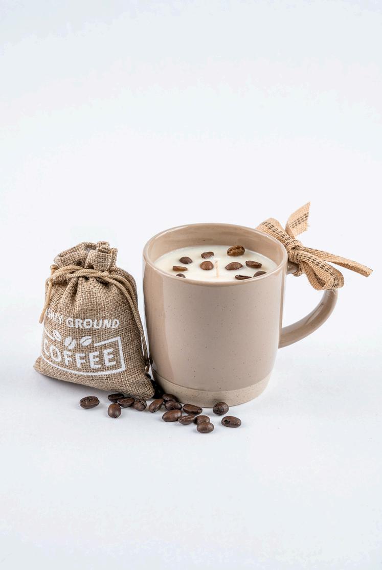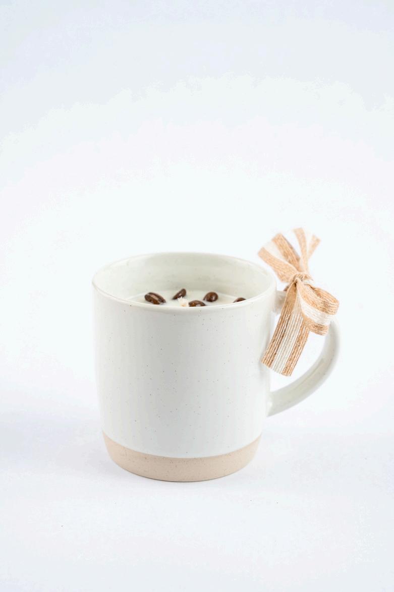 Topped with fresh coffee beans Oz vary Upcycled fine china