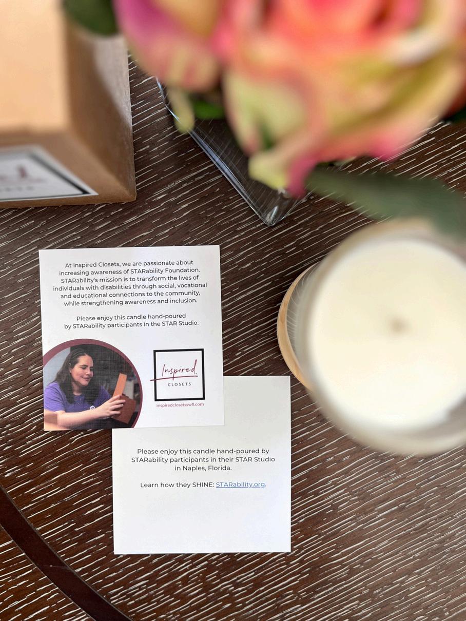 Here, all abilities come together to create beautiful and professional gifts such as handpoured natural soy candles, beaded jewelry, illustrated cards and more Their products are sold in the Studio’s on-site boutique in the Naples Design District, online, to a growing number of retailers and community partners, and at numerous community events. Each vibrant item sparks joy as a meaningful gift, perfect souvenir or home accent